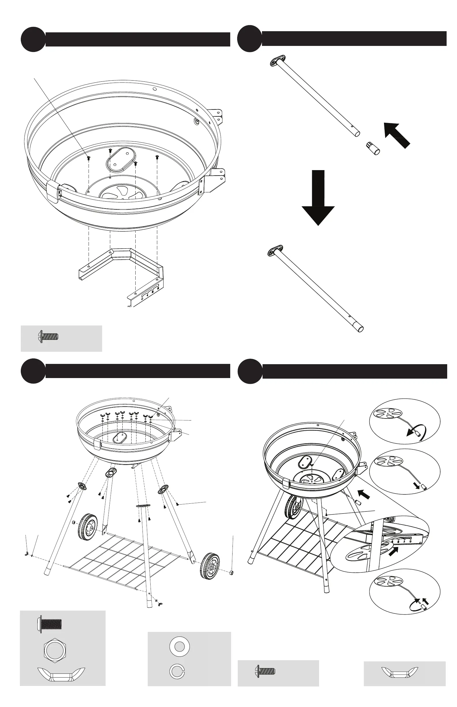 BUBBA burger CBC1844F - Assembly Instructions - Part 2; Attach Ash Receiver Slide; Attach Feet; Attach Legs, Wheels, and Bottom Mesh