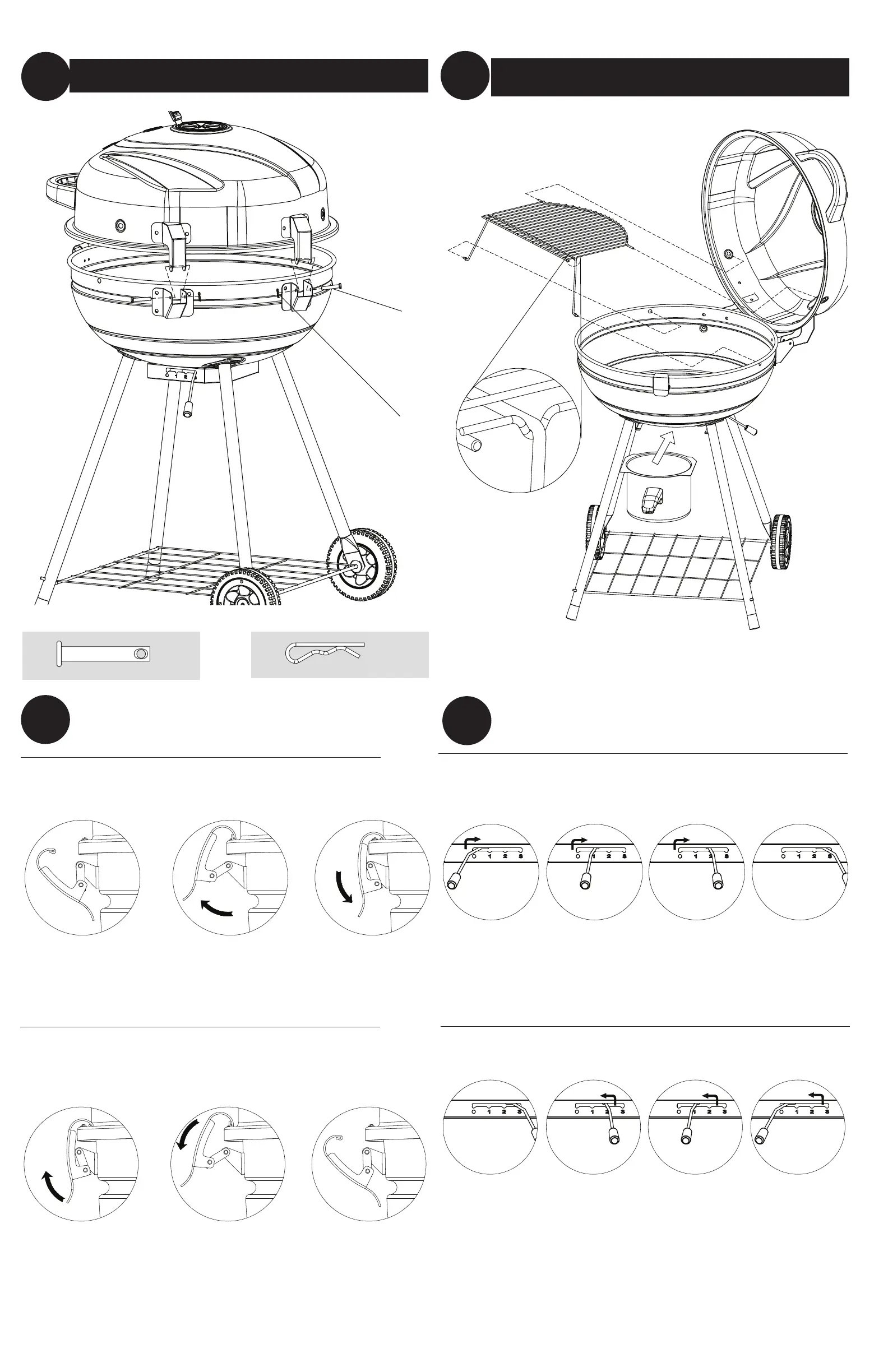 BUBBA burger CBC1844F - Assembly Instructions - Part 3; Attach Lid; Insert Warming Rack and Ash Receiver; Lid Locking Mechanism