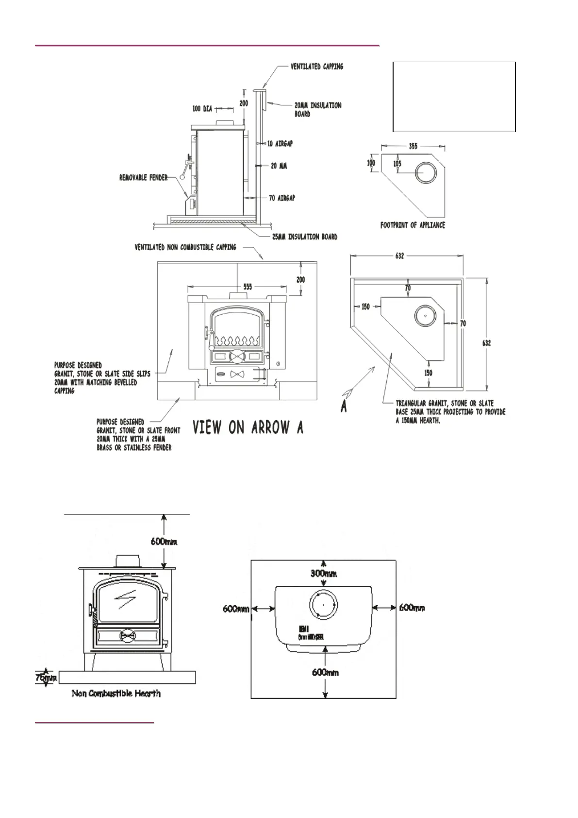 The stove must be fitted with our MK3 flue system as illustrated in figs 4 & 5.
