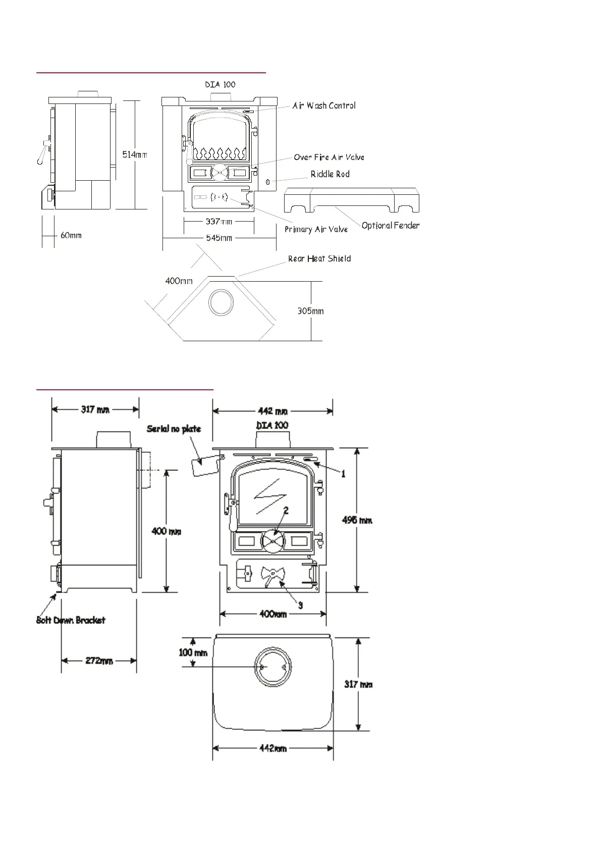 Bubble CORNER - Stove Dimensions; 3 B Corner Multifuel Stove Fig 1; 4 B Multifuel Stove Fig 1
