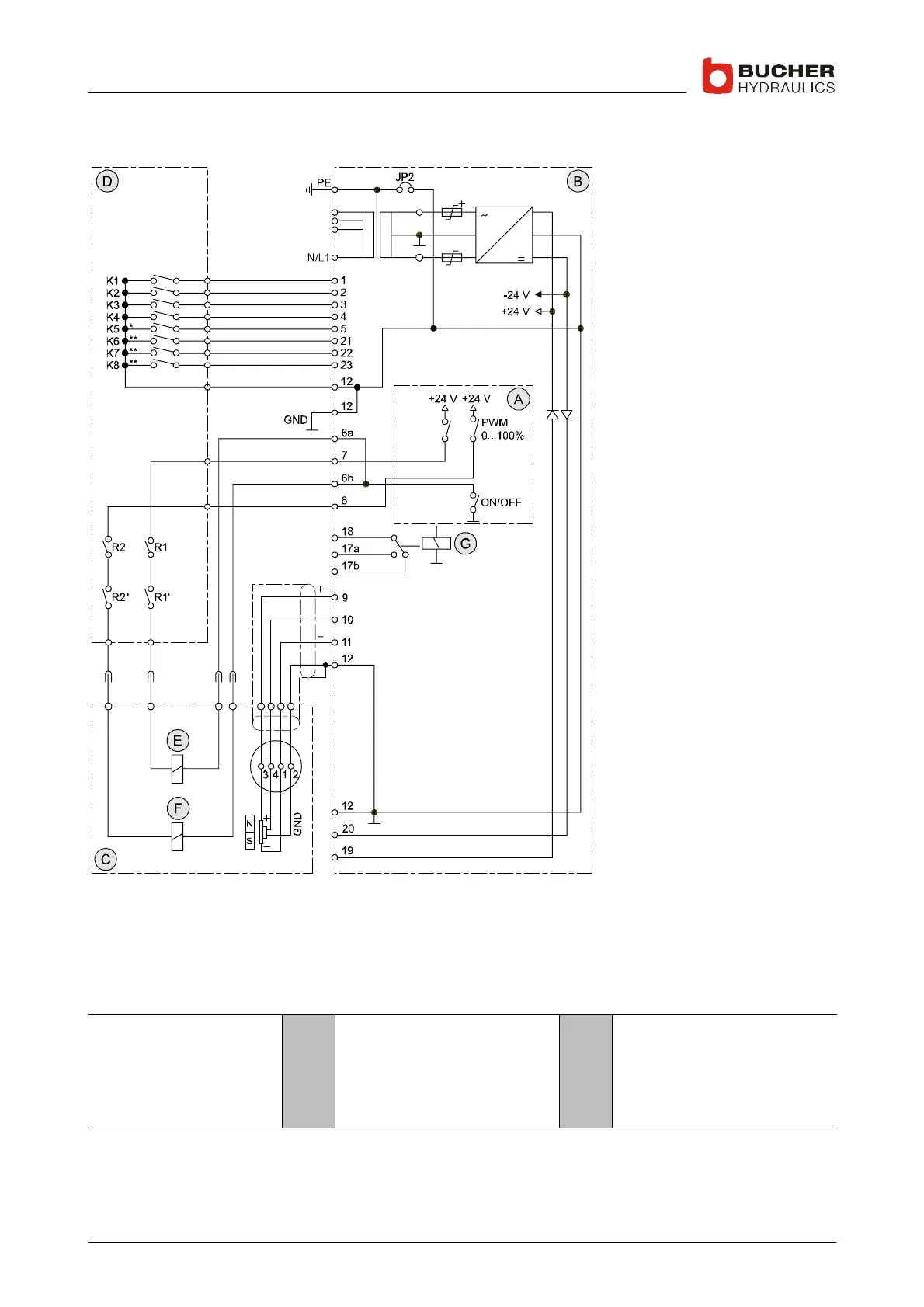 K1−K8, potential−free contacts or semiconductors