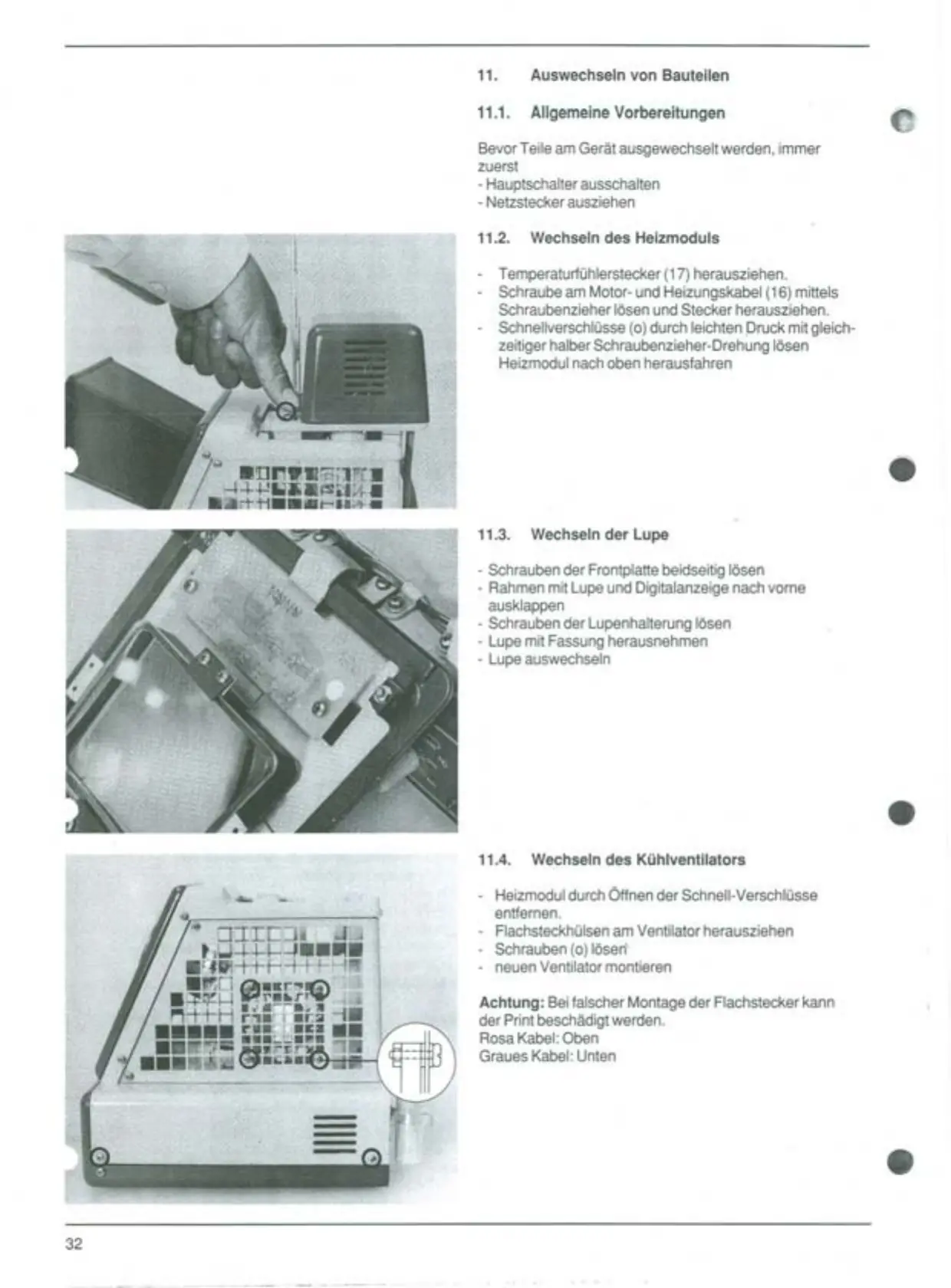 Bevor Teile am Gerät ausgewechselt werden, immer