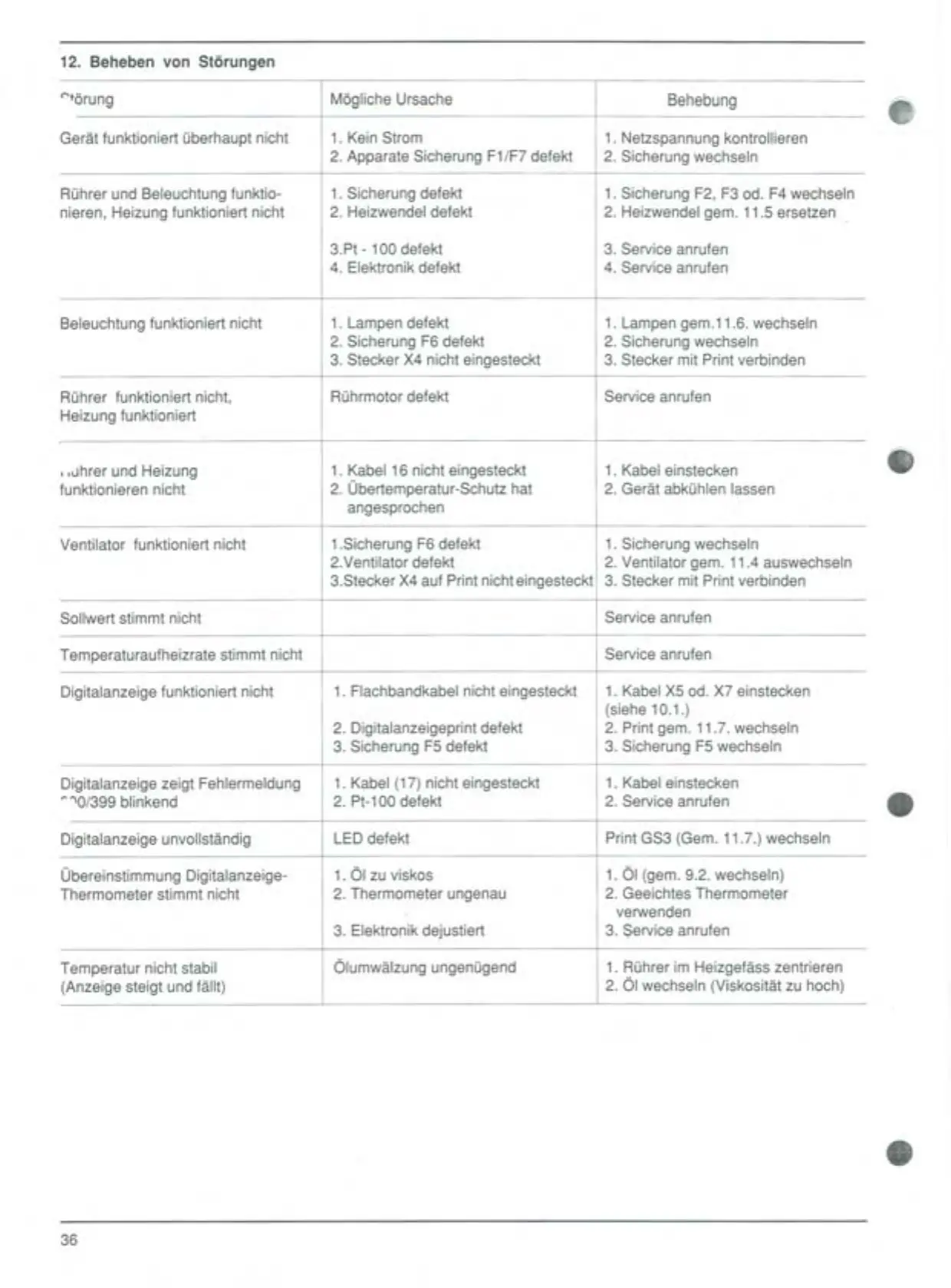Ölumwälzung ungenügend 1. Rührer im Heizgefäss zentrieren