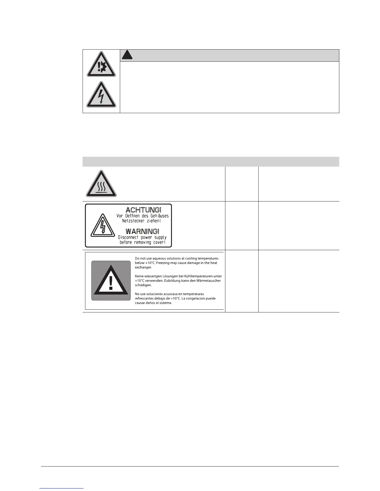 The following warning sticker(s) can be found on the housing or assemblies of the Mini Spray Dryer