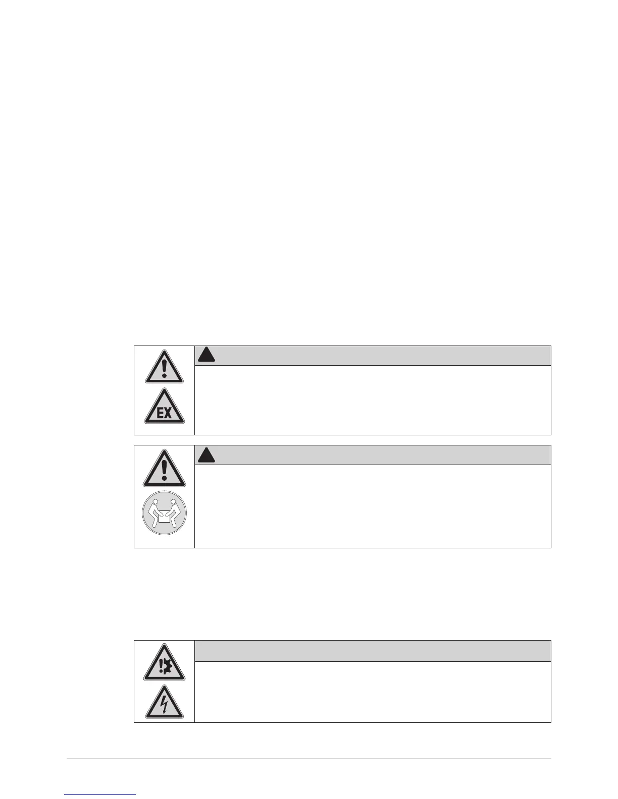 • Do not operate the instrument with explosive gas mixtures without inertization