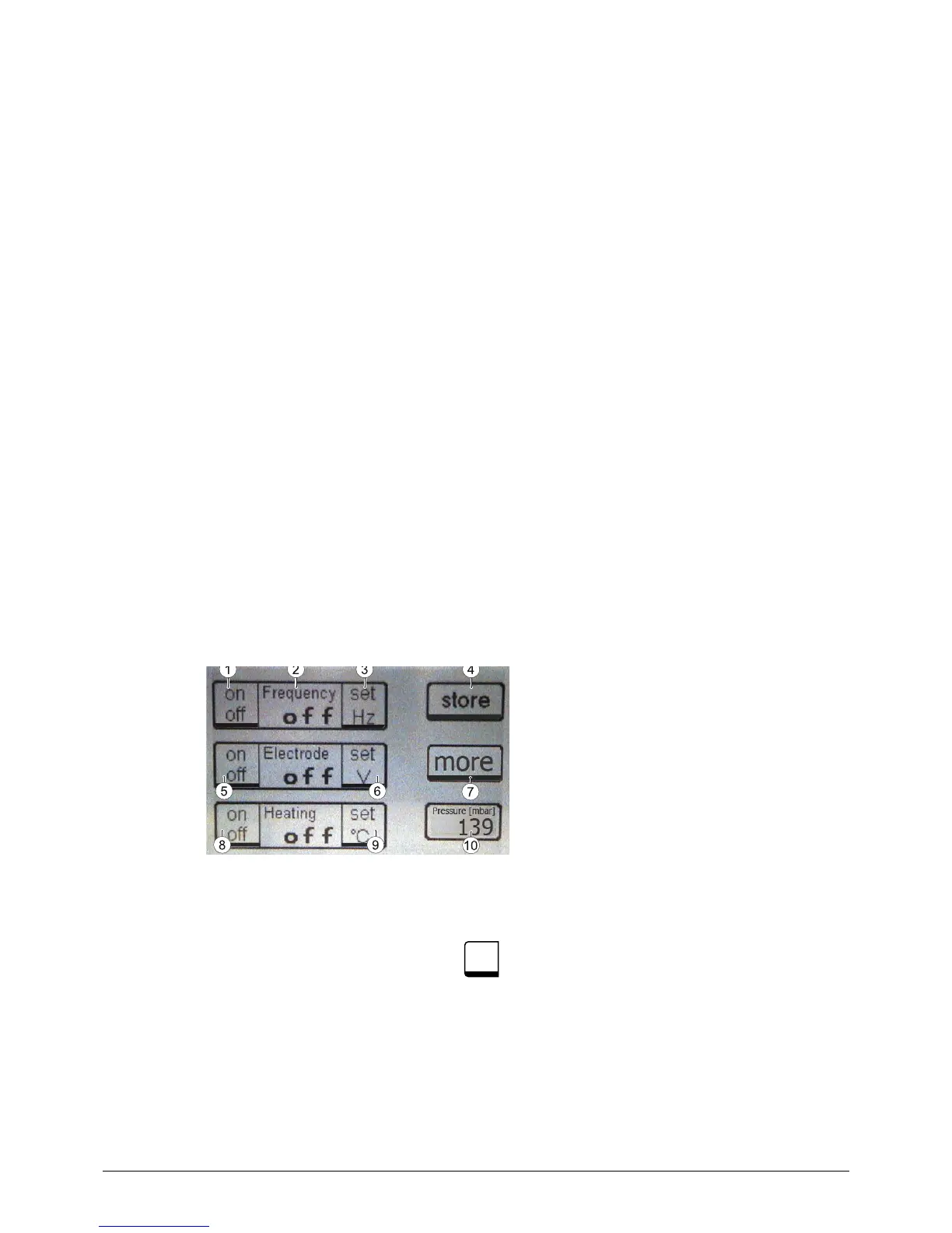 trode, heating and more options concerning frequency. Further are on the screen the indication of the