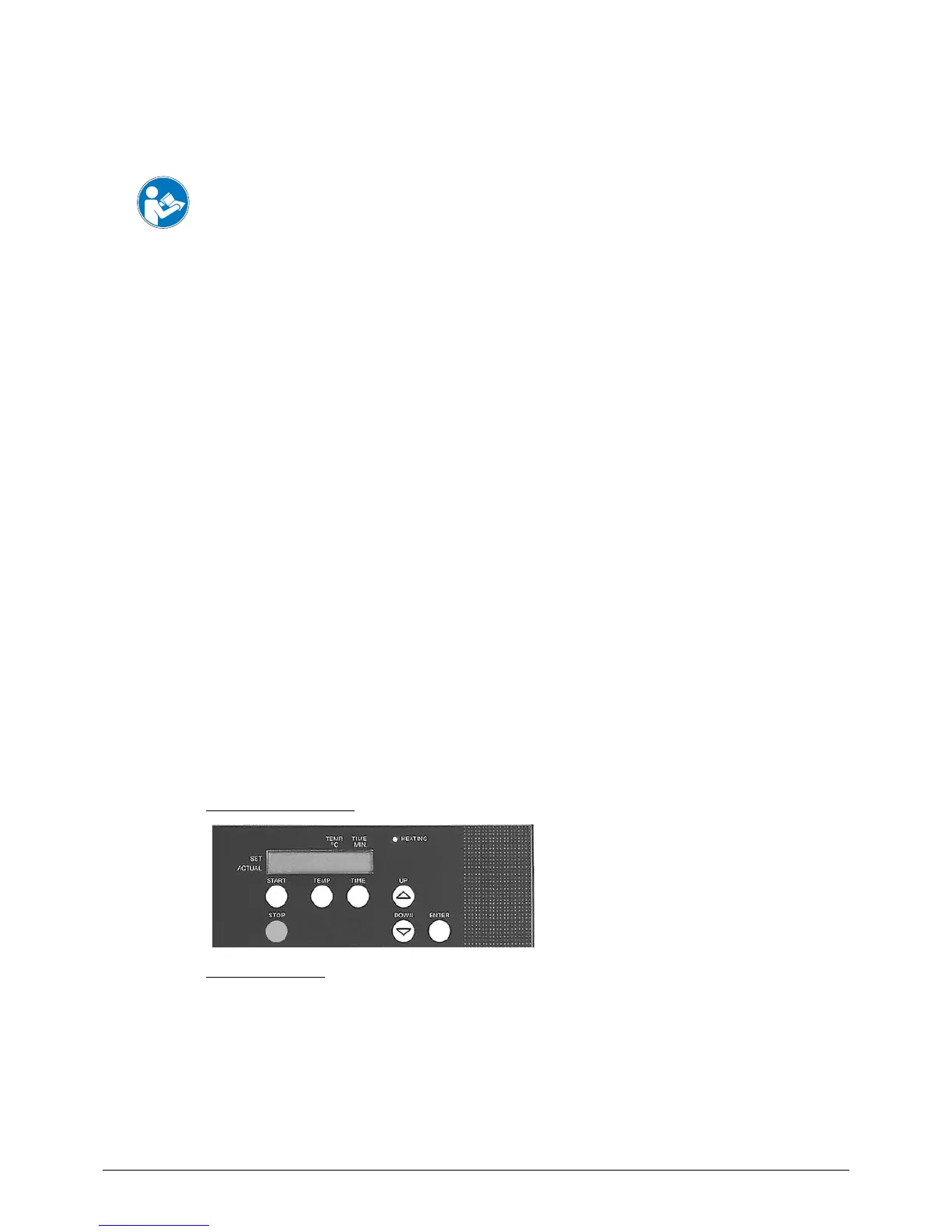 The blinking LED “HEATING” indicates that the instrument is still hot and is being cooled by the •