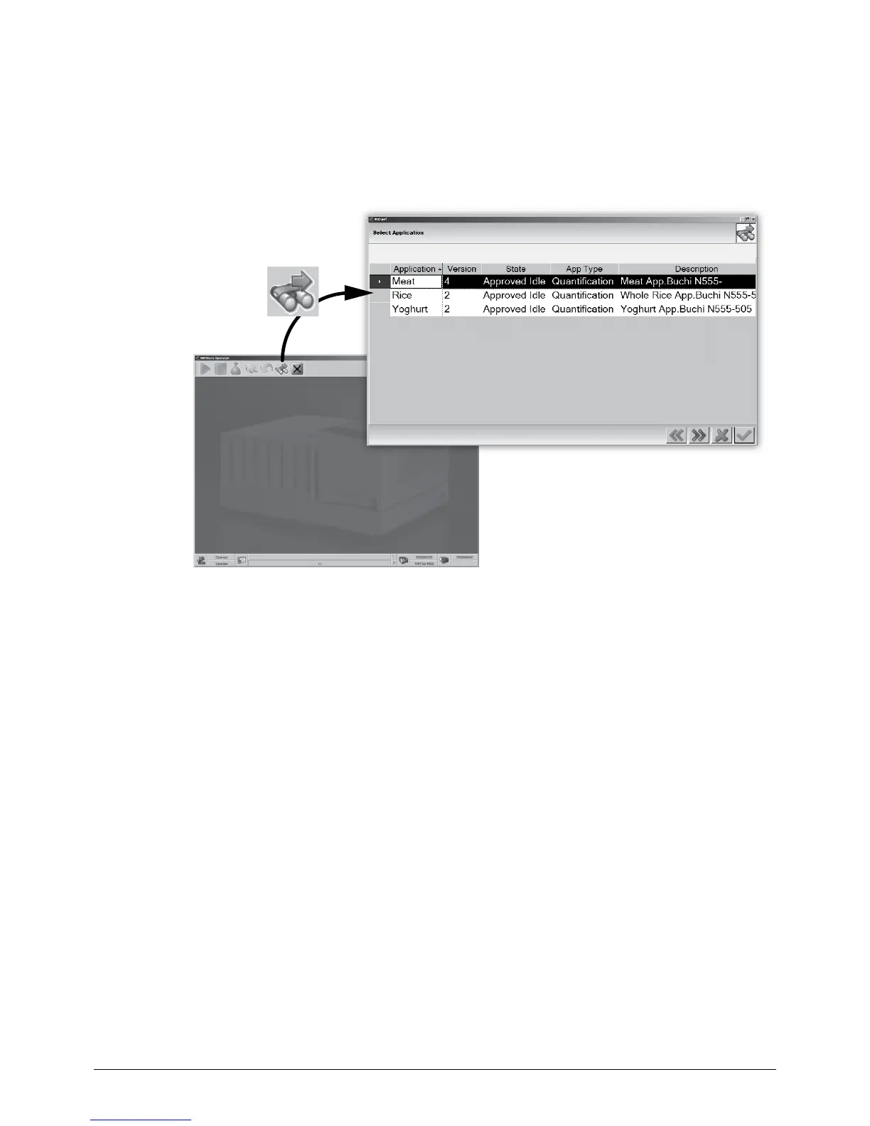 in a pop-up window. Select the matching application for the actual sample. Press the ‘Next’ button to
