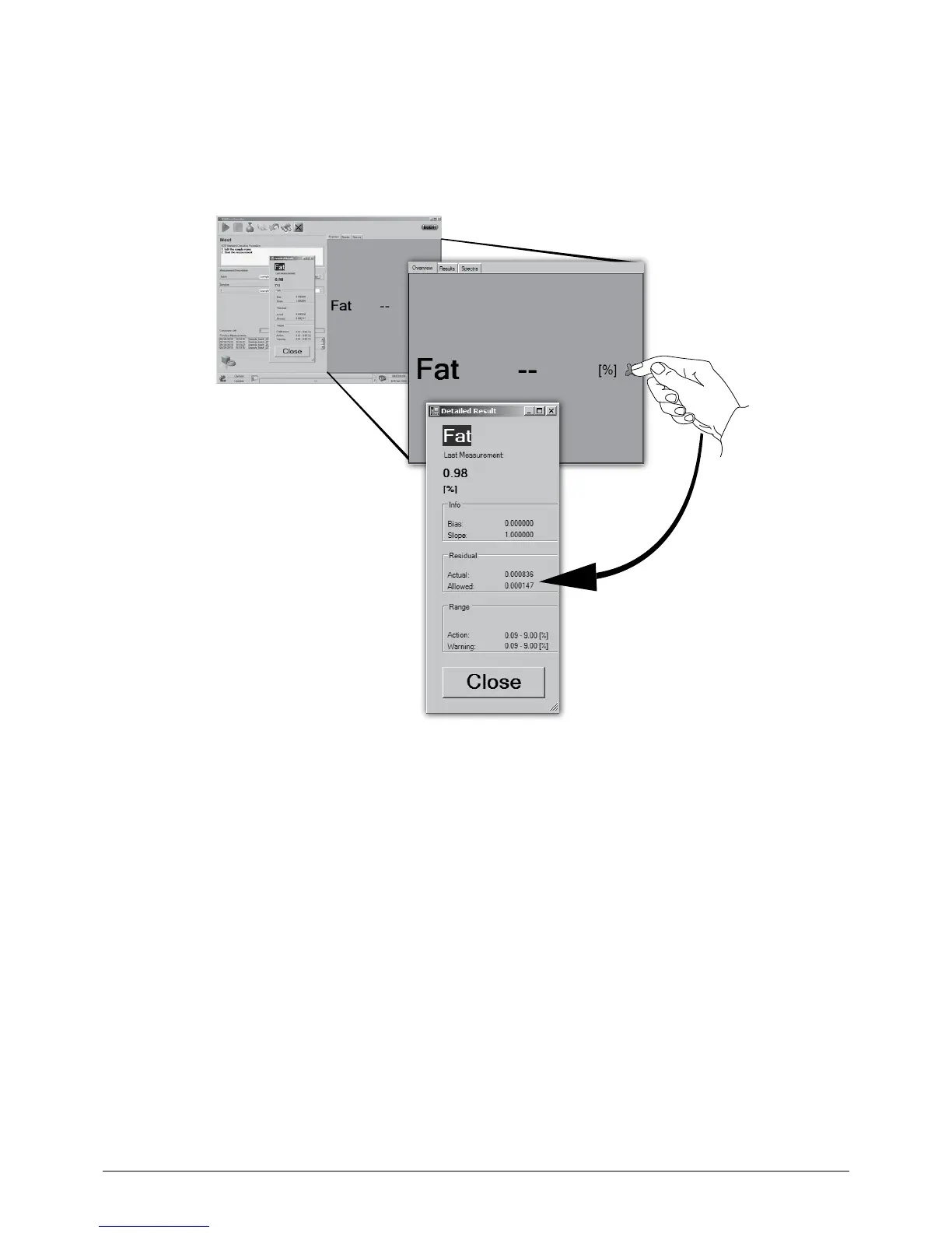 Press the symbol in the overview window to call up the ‚Detailed Result‘ window. The individual