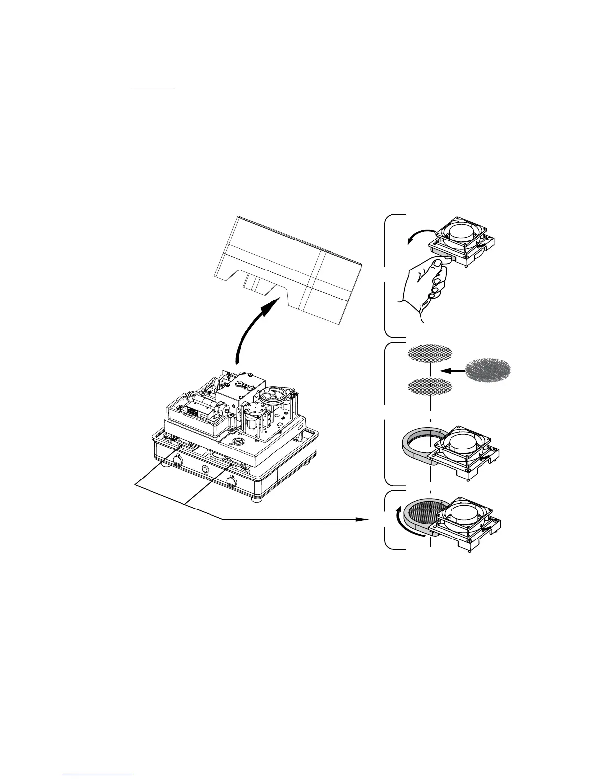 • For each filter, place a new filter pad between the metal grids b and remount it in its holder