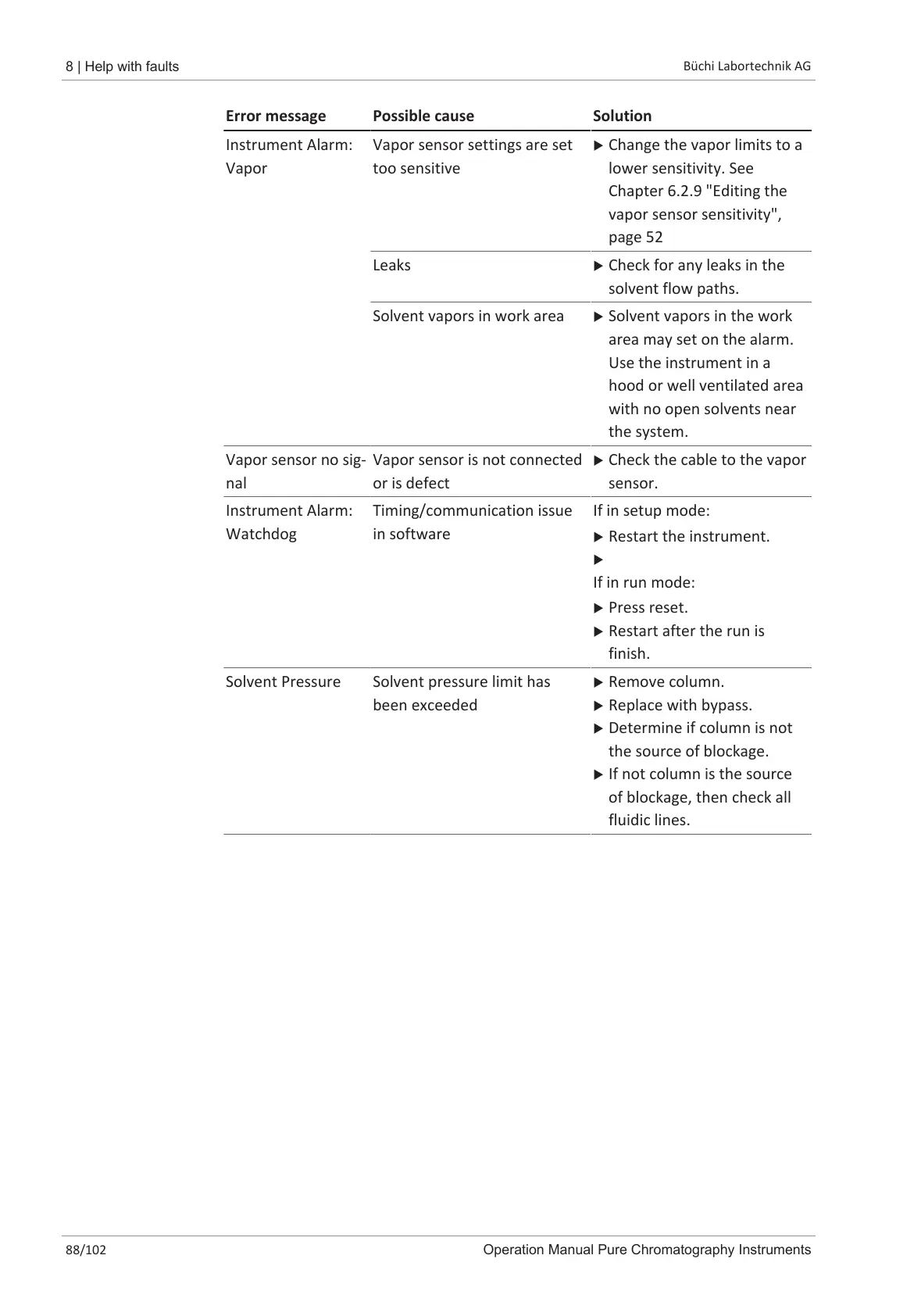 Solvent Pressure Solvent pressure limit has