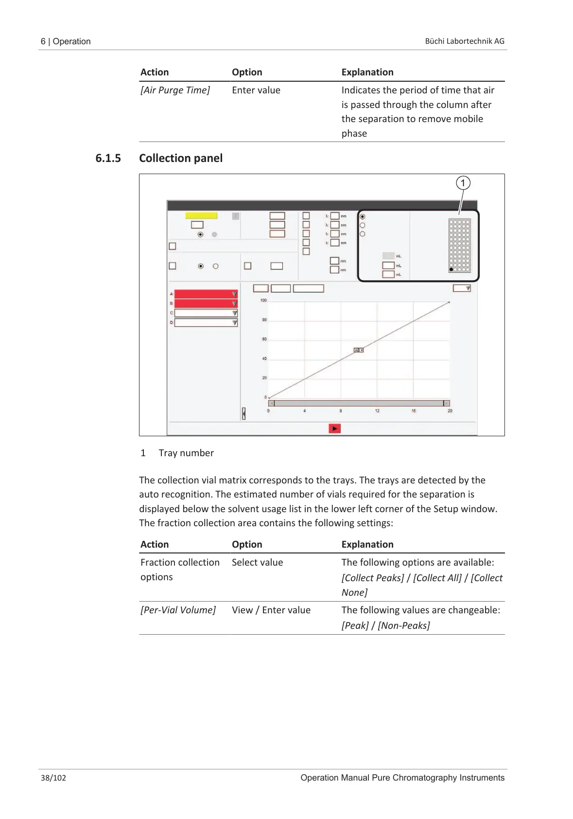 The collection vial matrix corresponds to the trays. The trays are detected by the