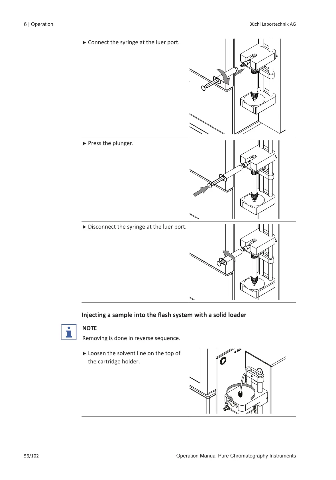 u Connect the syringe at the luer port.