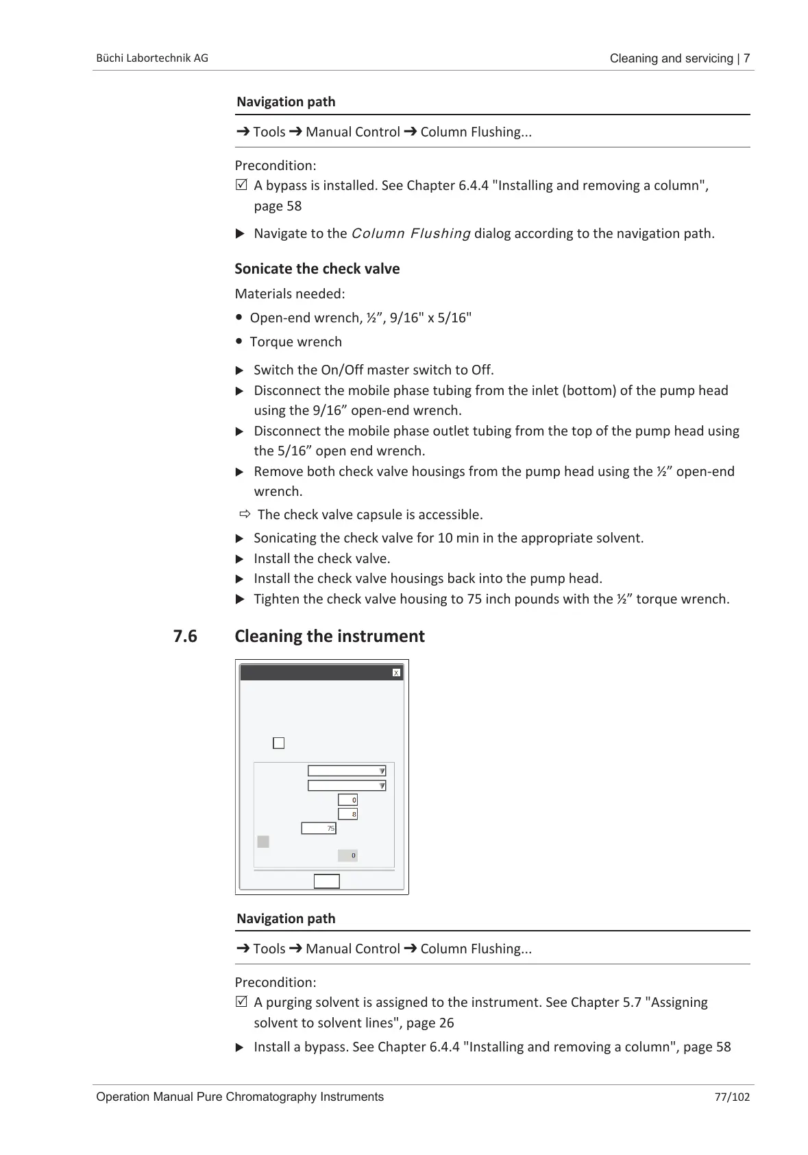➔ Tools ➔ Manual Control ➔ Column Flushing...