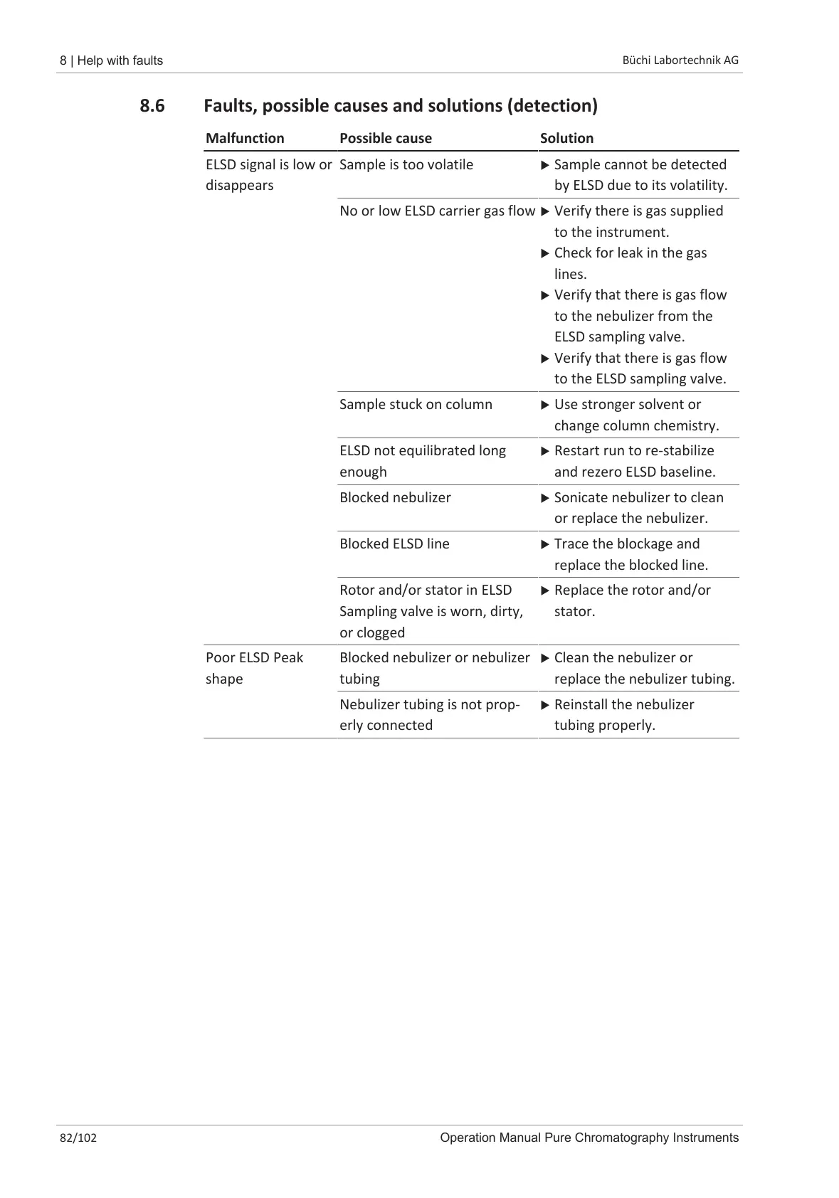 8.6 Faults, possible causes and solutions (detection)