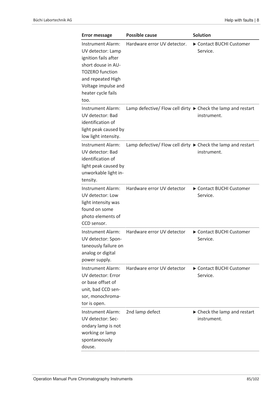 Hardware error UV detector u Contact BUCHI Customer