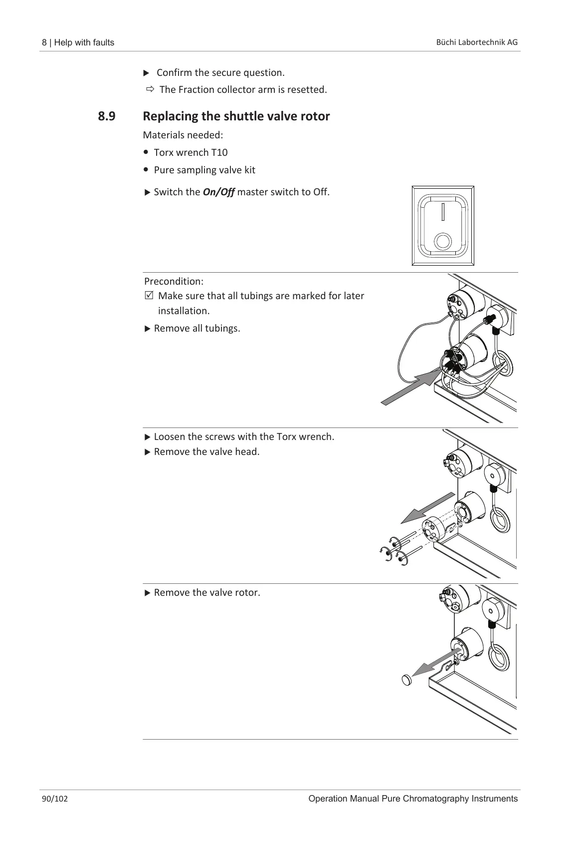 8.9 Replacing the shuttle valve rotor