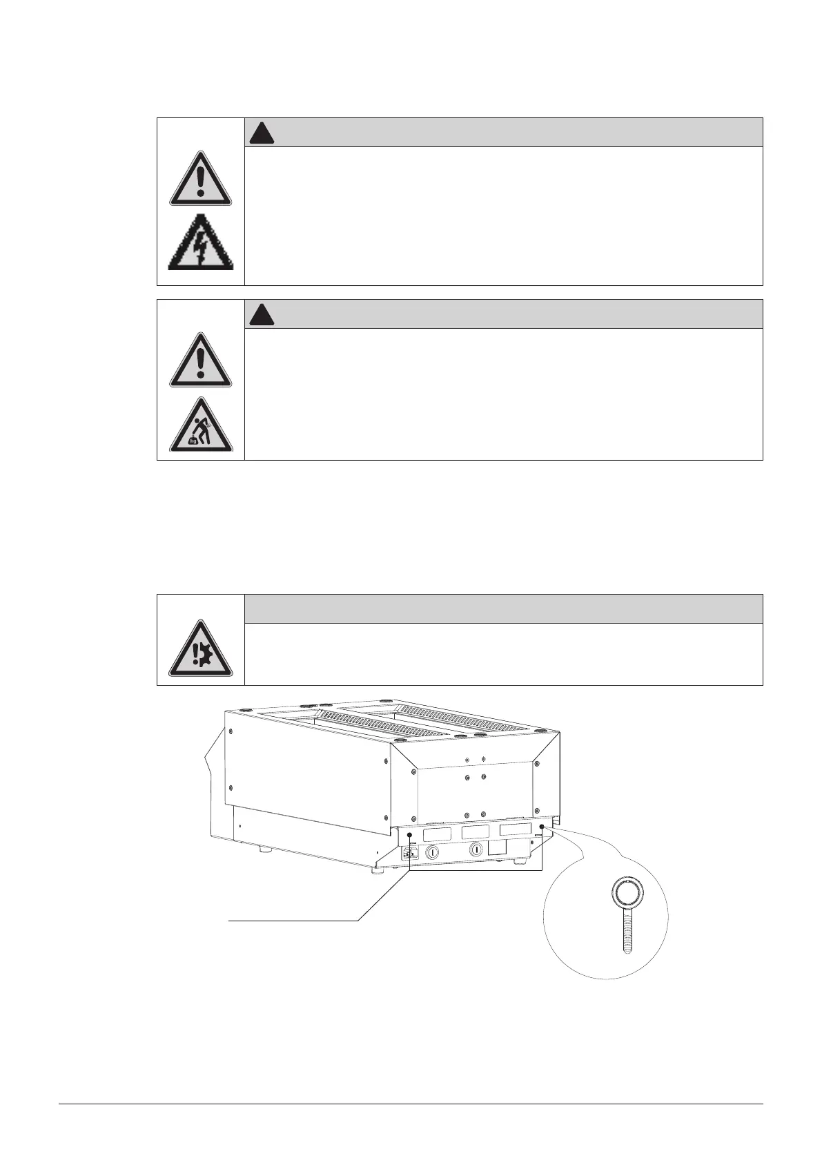 In earthquake prone regions the instrument must be fixed to the fume hood bench. The penetration
