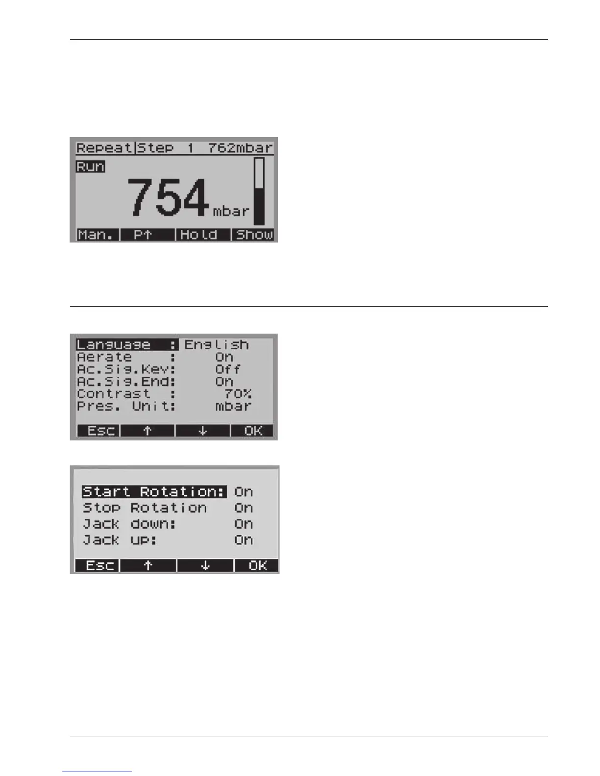 • Start rotation ON/OFF: Autostart rotation of evaporating