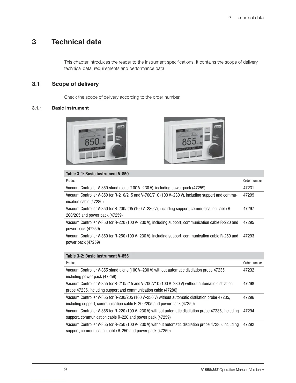 Table 3-2: Basic instrument V-855