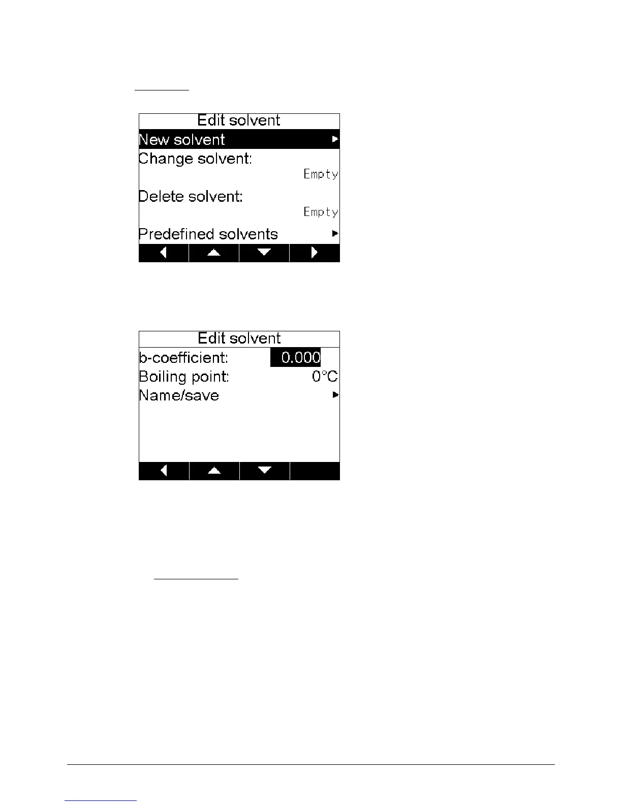 When you want to define a new solvent or change an existing solvent, press the corresponding