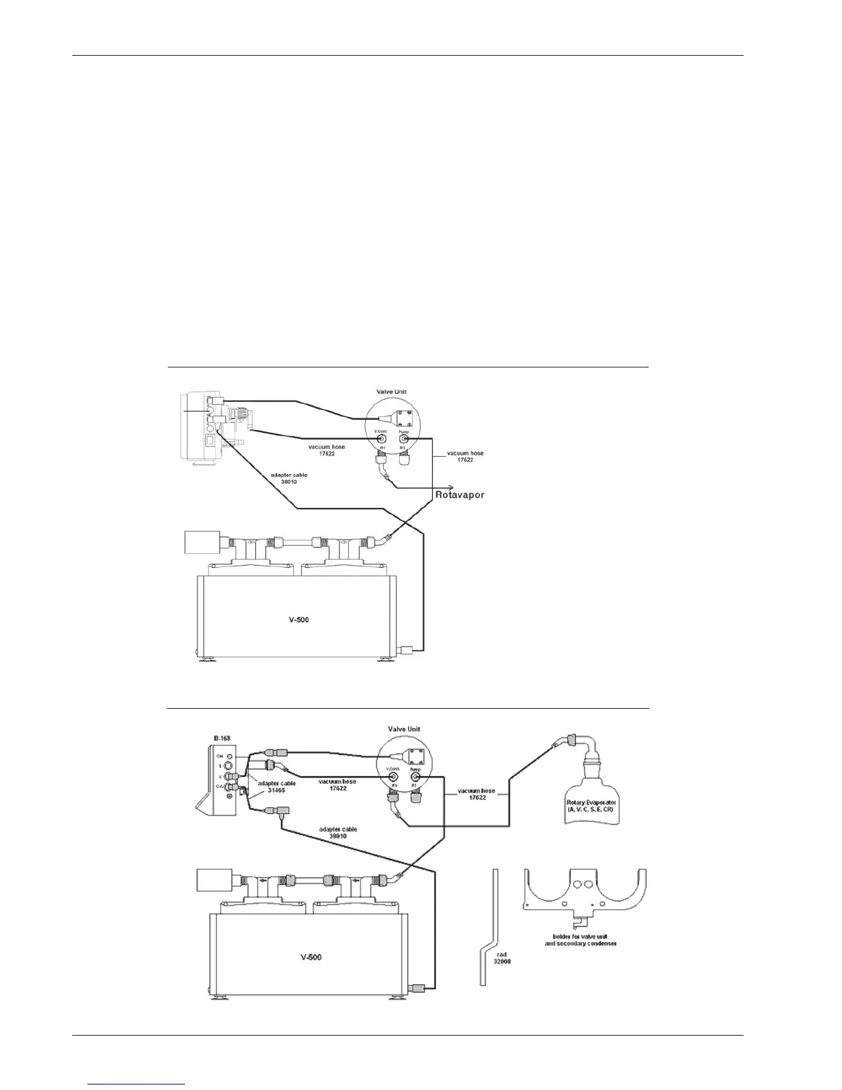 Connection of vacuum pump to the B-168 controller, valve unit and rotation evaporator