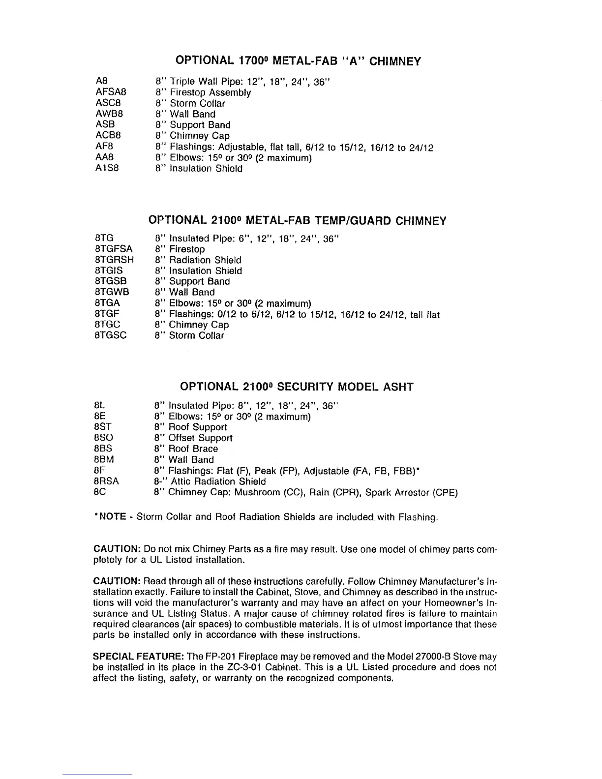 not mix Chimey Parts as a fire may result. Use one model of chimey parts com-