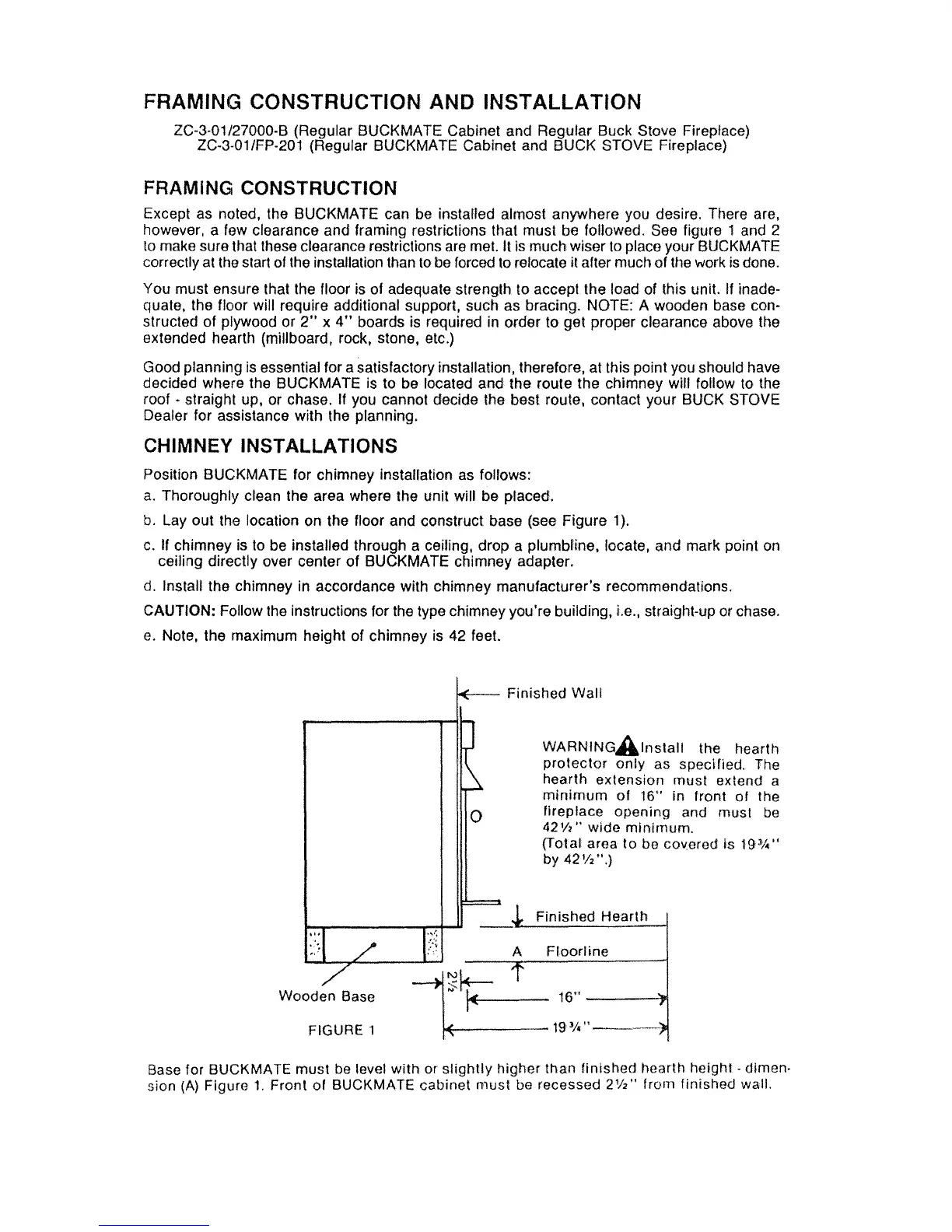 Position BUCKMATE for chimney installation as follows: