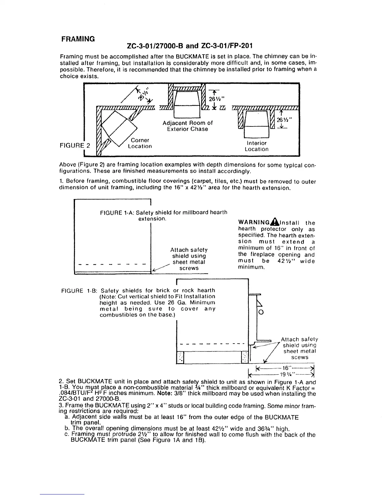 unit framing, including the 16" x 421/2" area for the hearth extension.