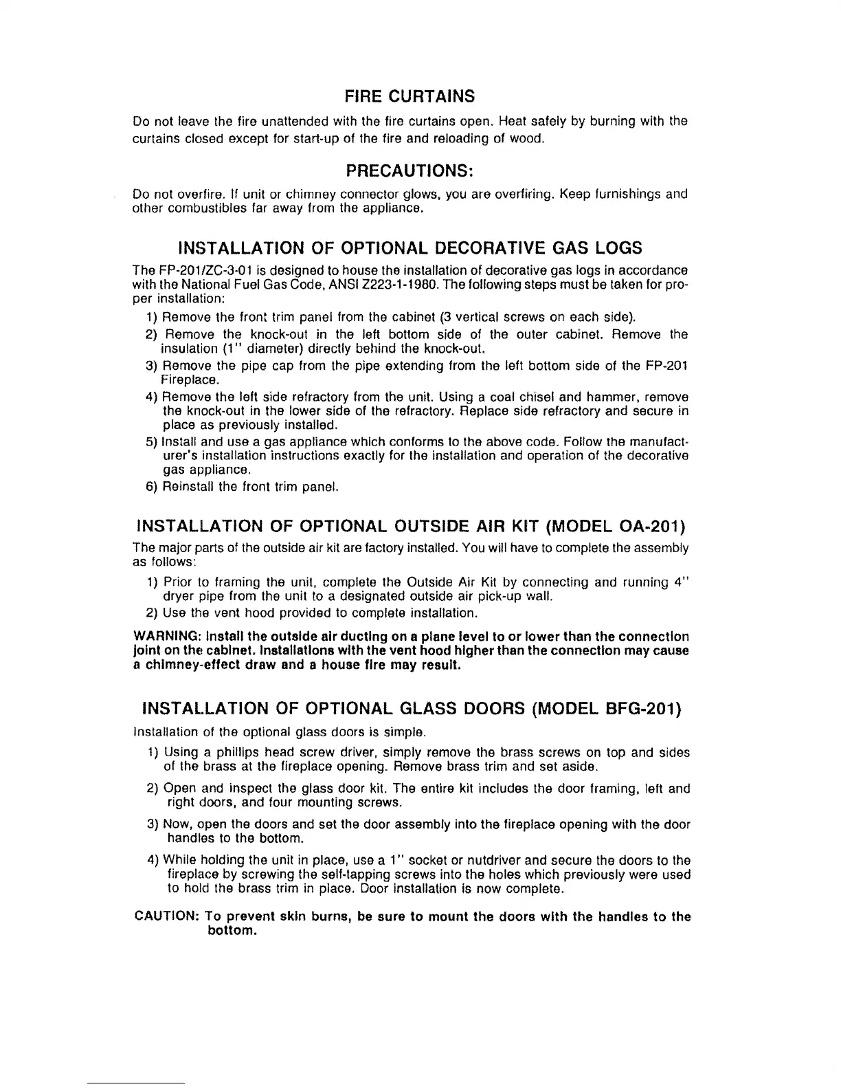 not leave the fire unattended with the fire curtains open. Heat safely by burning with