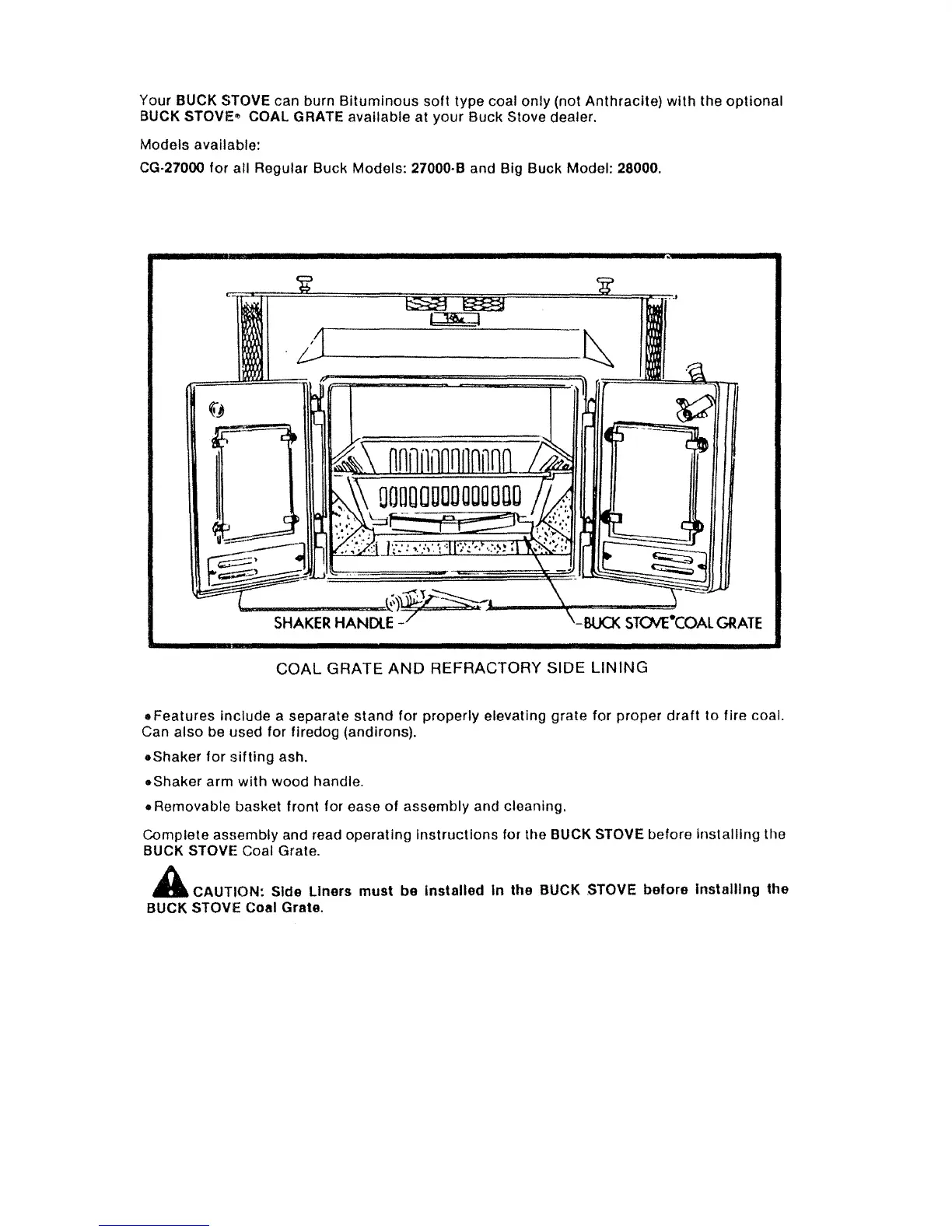 STOVE'" COAL GRATE available at your Buck Stove dealer.