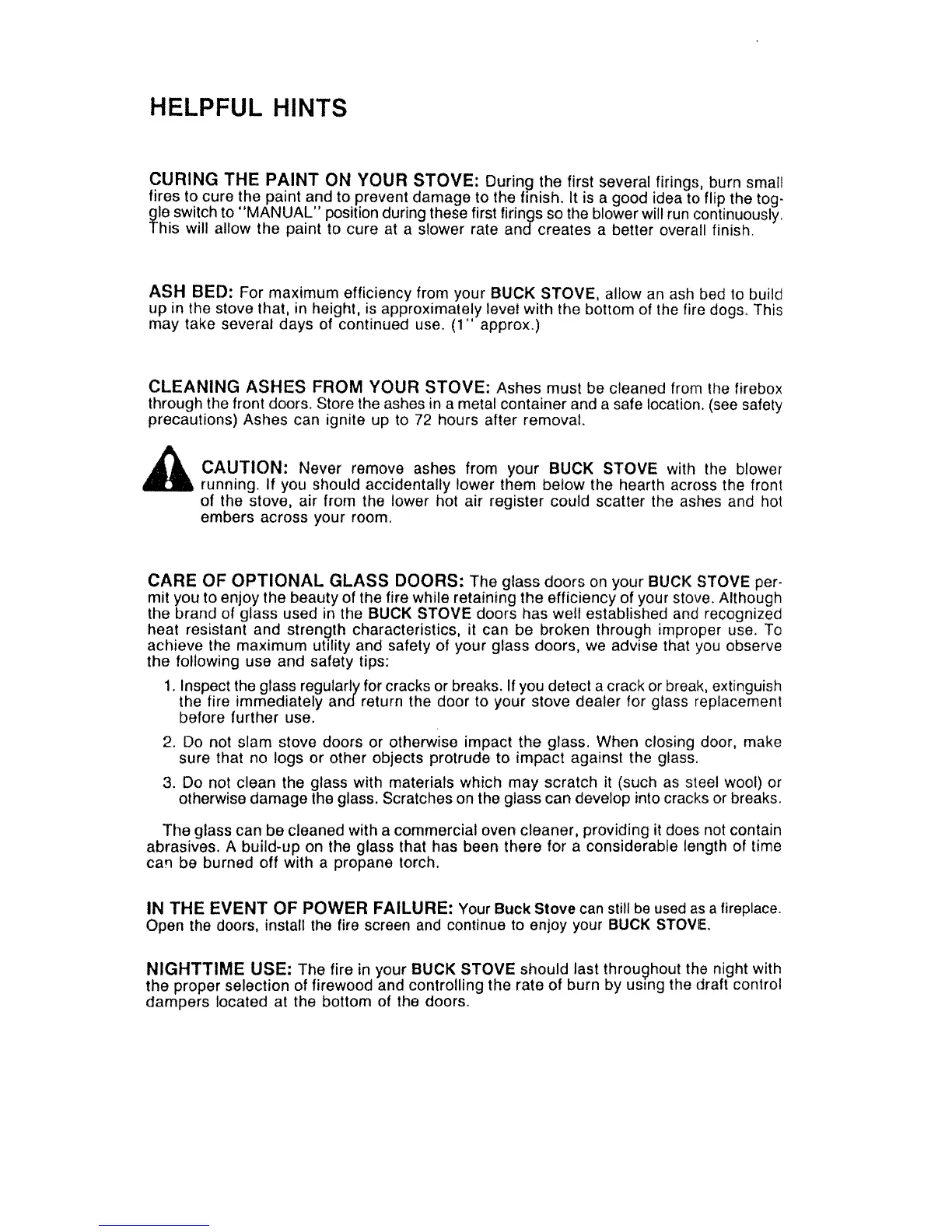 IN THE EVENT OF POWER FAILURE: Your Buck Stove