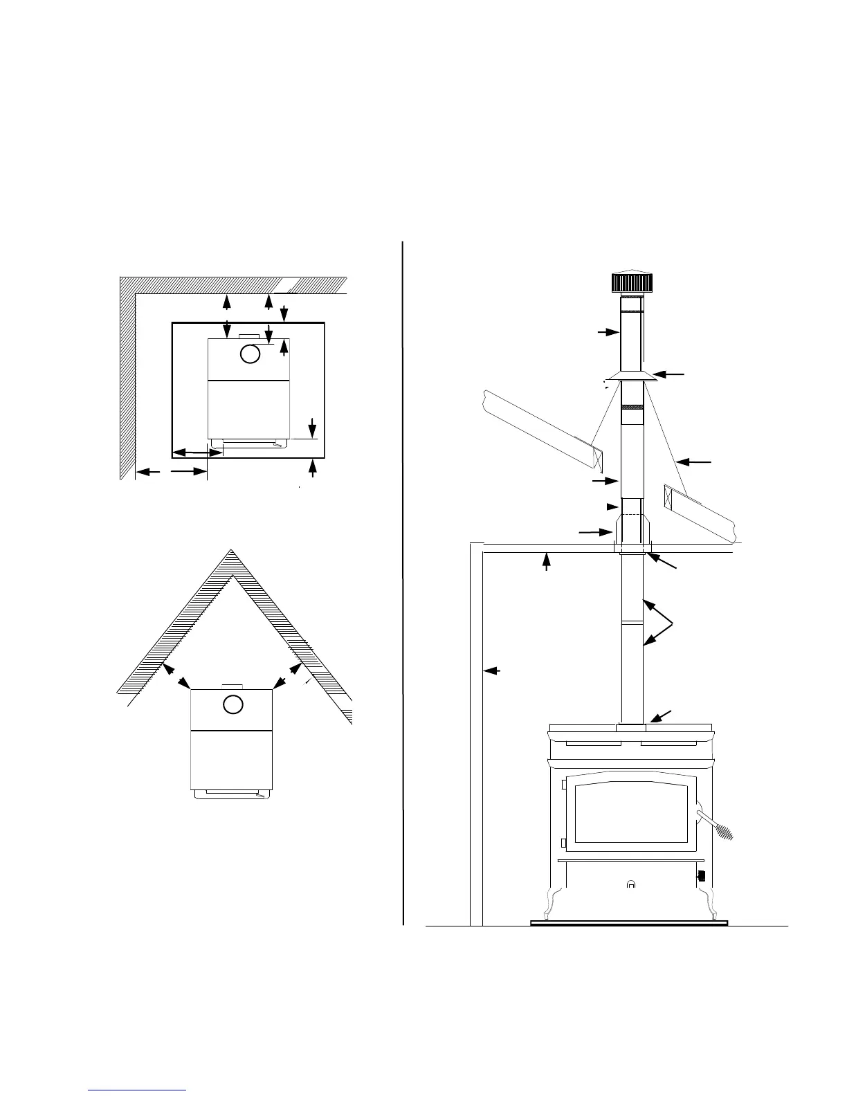 and minimum floor protector. The clearances above may be reduced. Follow NFPA-211 codes if