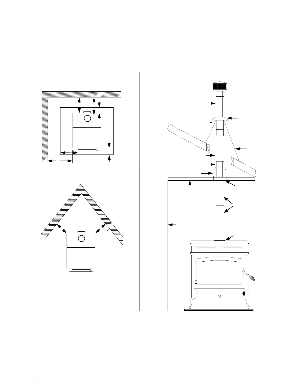 NOTE: All clearances are to combustibles with all low clearance shields and double wall pipe