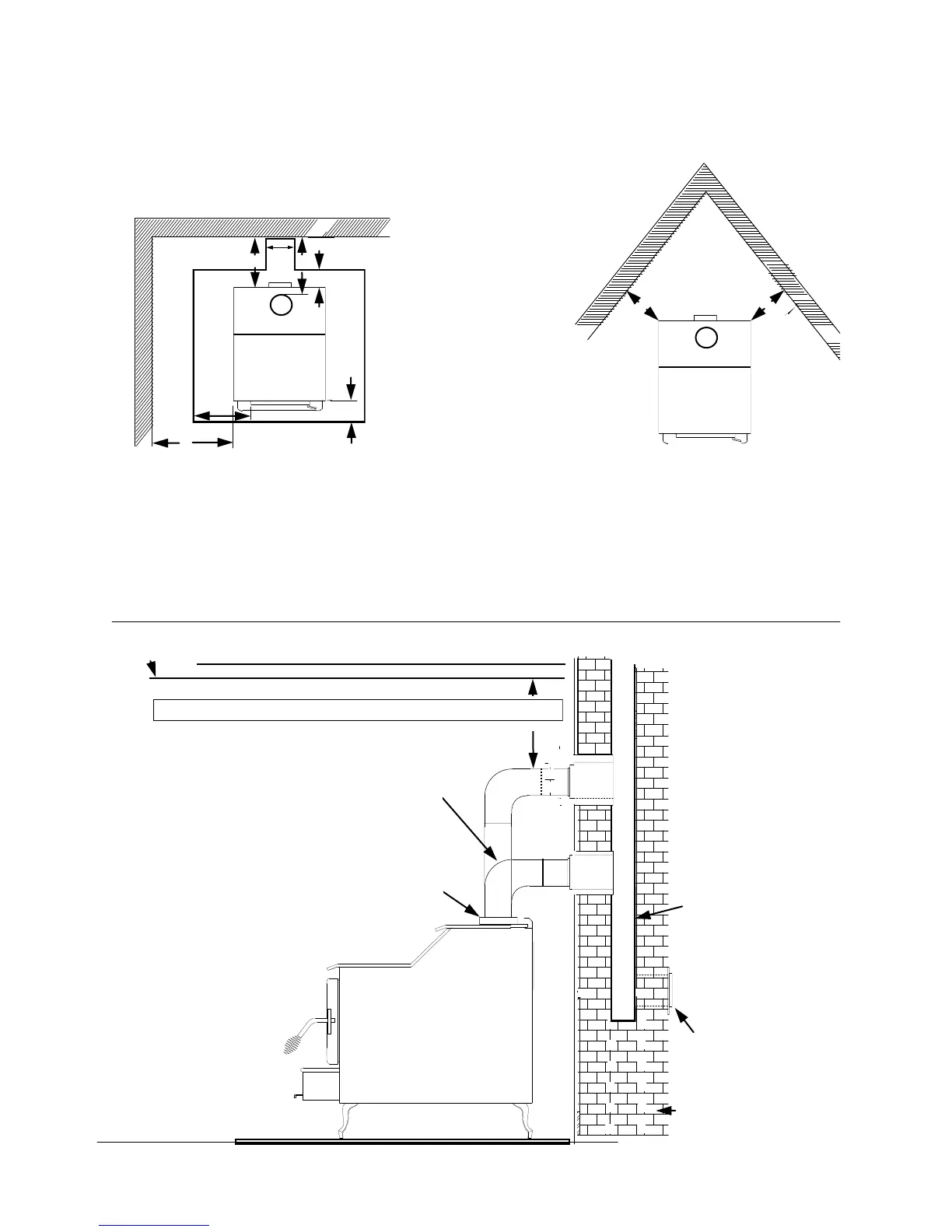 NOTE: All clearances are to combustibles with all low clearance shields and single wall pipe