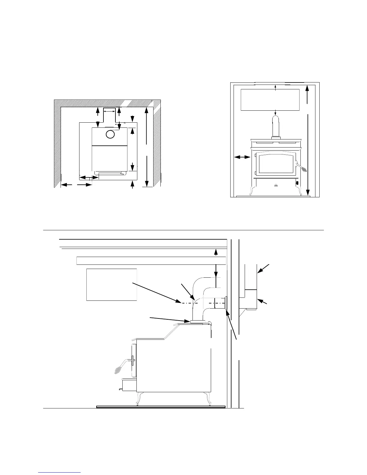 NOTE: All clearances are to combustibles with all low clearance shields and double wall pipe,