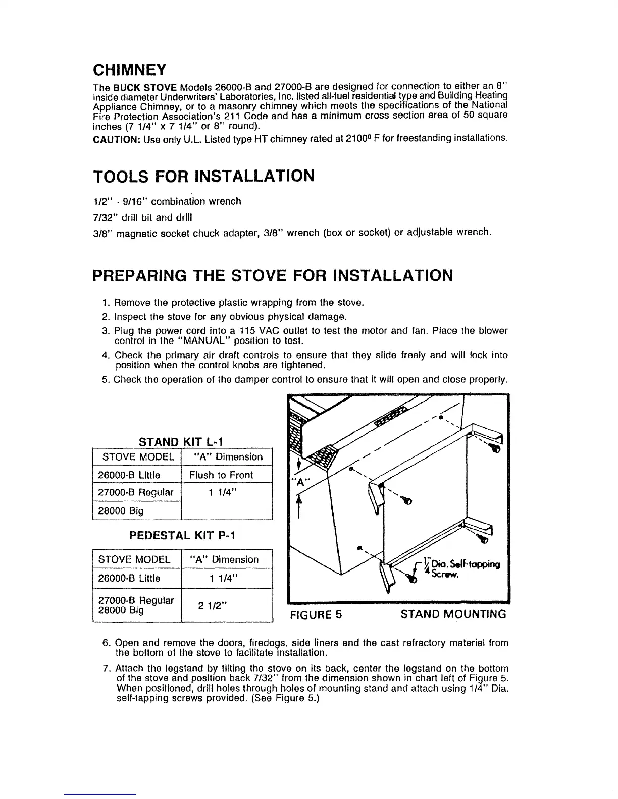 The BUCK STOVE Models 26000-B and 27000-B are designed for connection to either