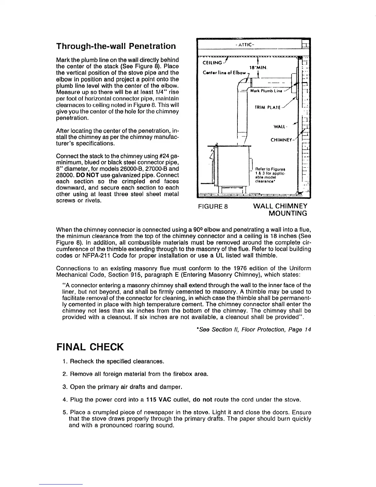 codes or NFPA-211 Code for proper installation or use a UL listed wall thimble.