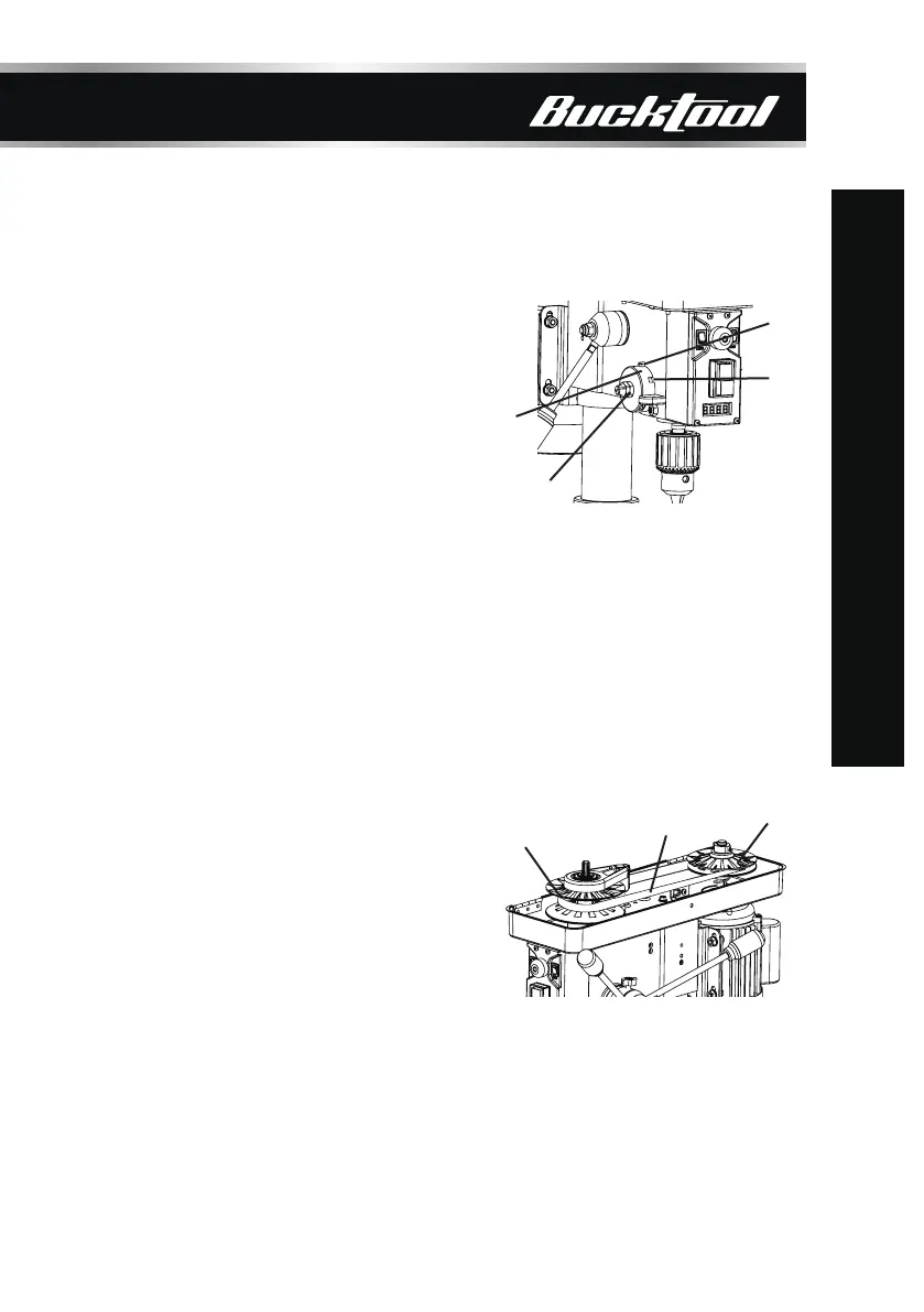 7. Plug in and turn ON the drill press. The belt will self-seat and achieve proper tension