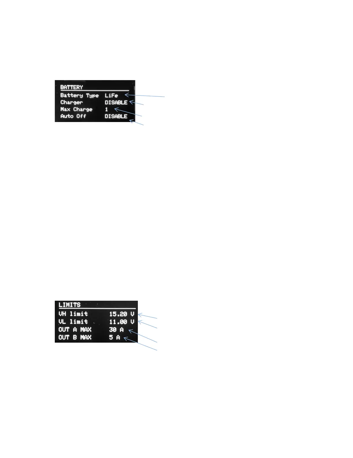 The Battery Settings Page (Figure 9) shows the user settings relating to the battery connected to the
