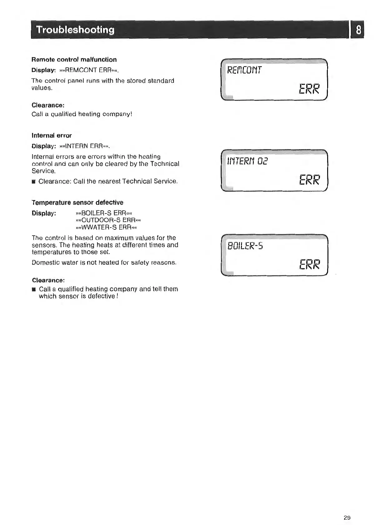 Internal errors are errors within the heating