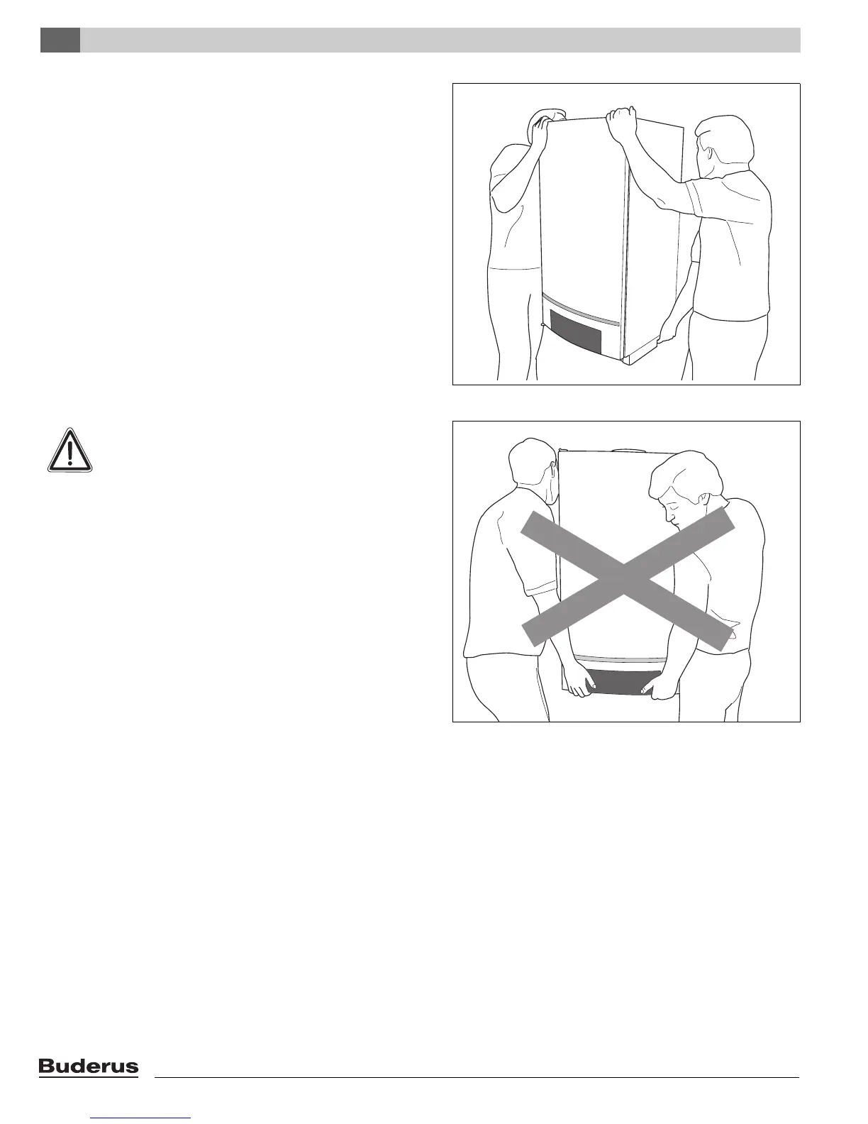 z Always lift and carry the boiler with two people as shown