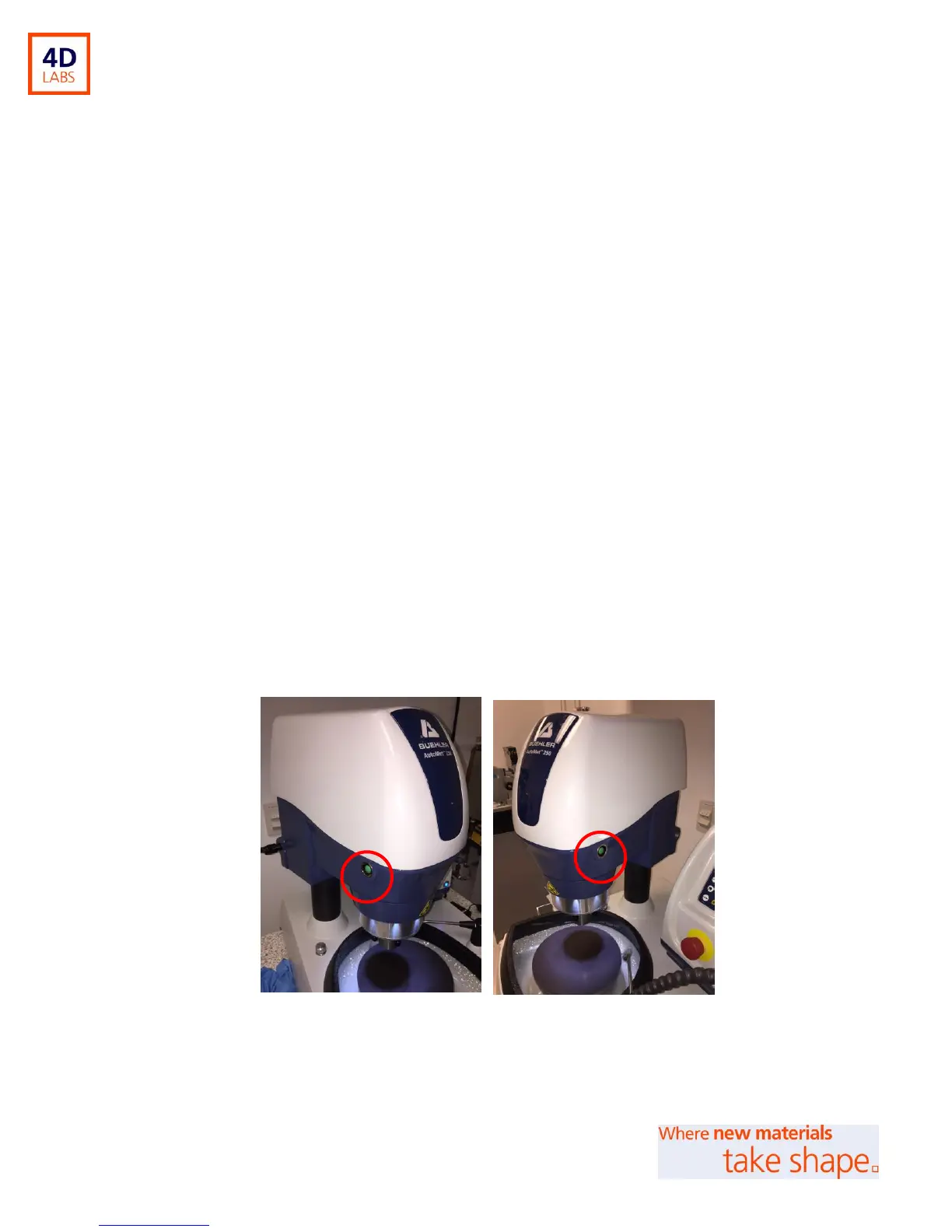 buttons are first held; polishing will not begin. Now you can place your samples into the