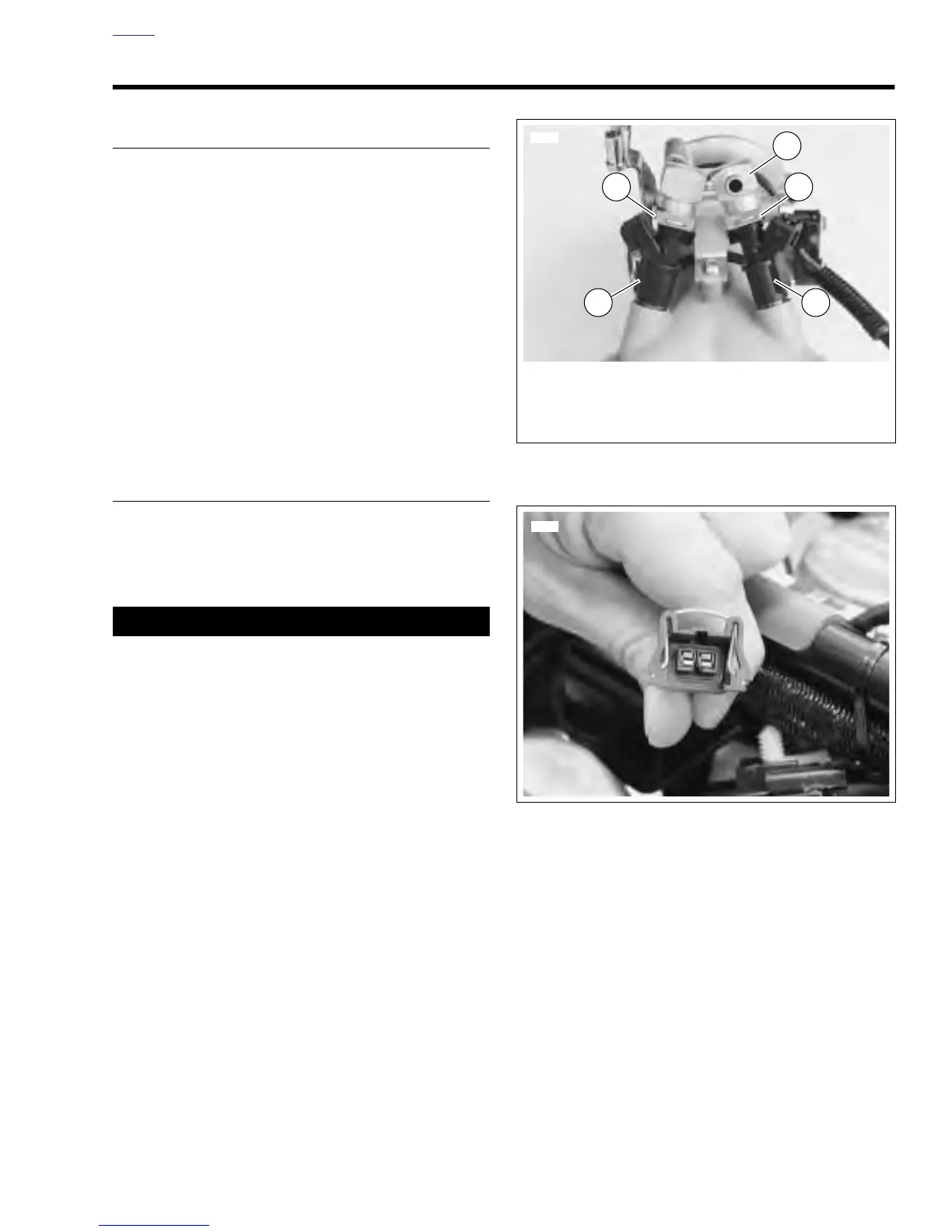 See Figure 4-50. The fuel injectors (1, 2) are solenoids that