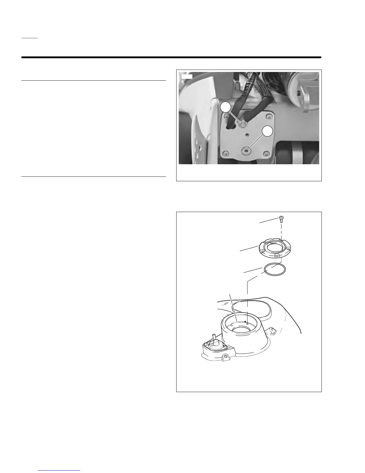 4. Remove fuel cap retaining ring and o-ring (2). Discard o-