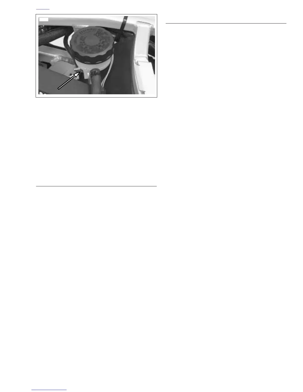 11. See Figure 2-122. Feed rear brake reservoir hose under-