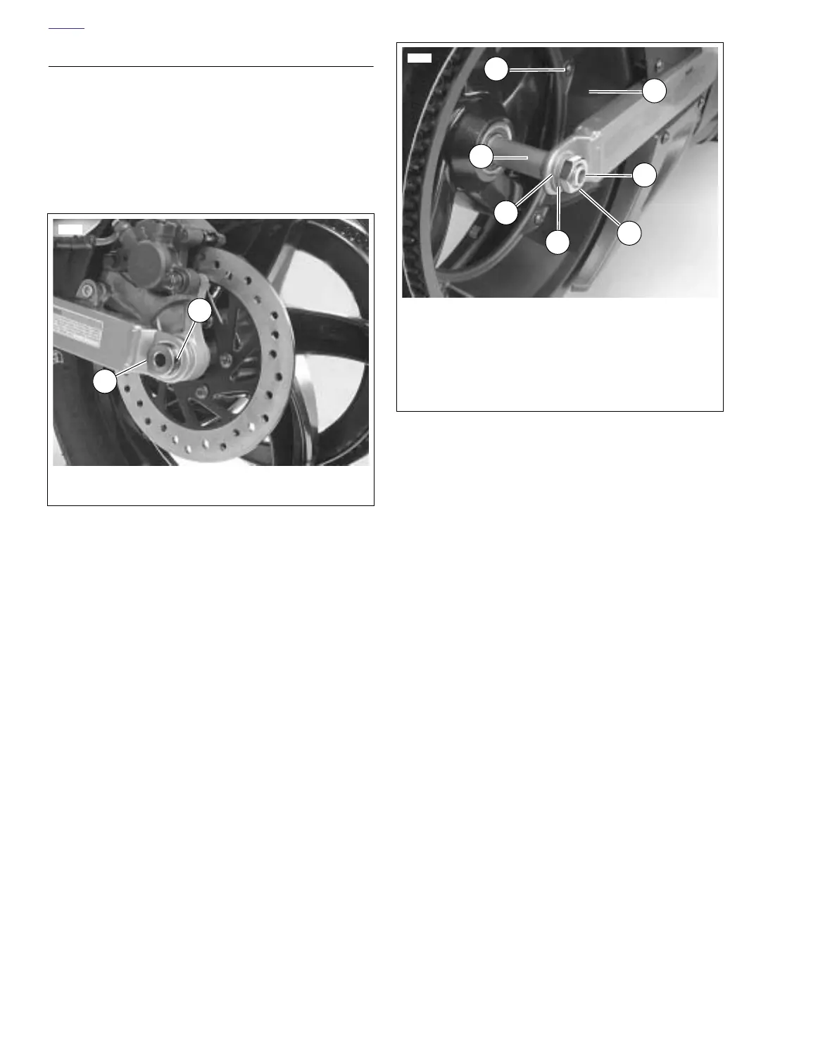6. Lower motorcycle rear wheel.
