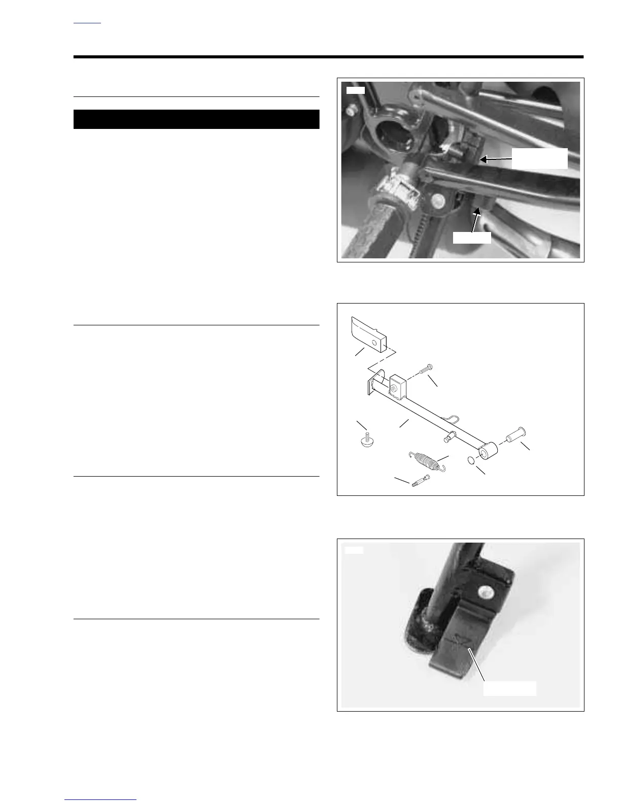 2. Attach side stand dragger (1) to side stand with screw (2).