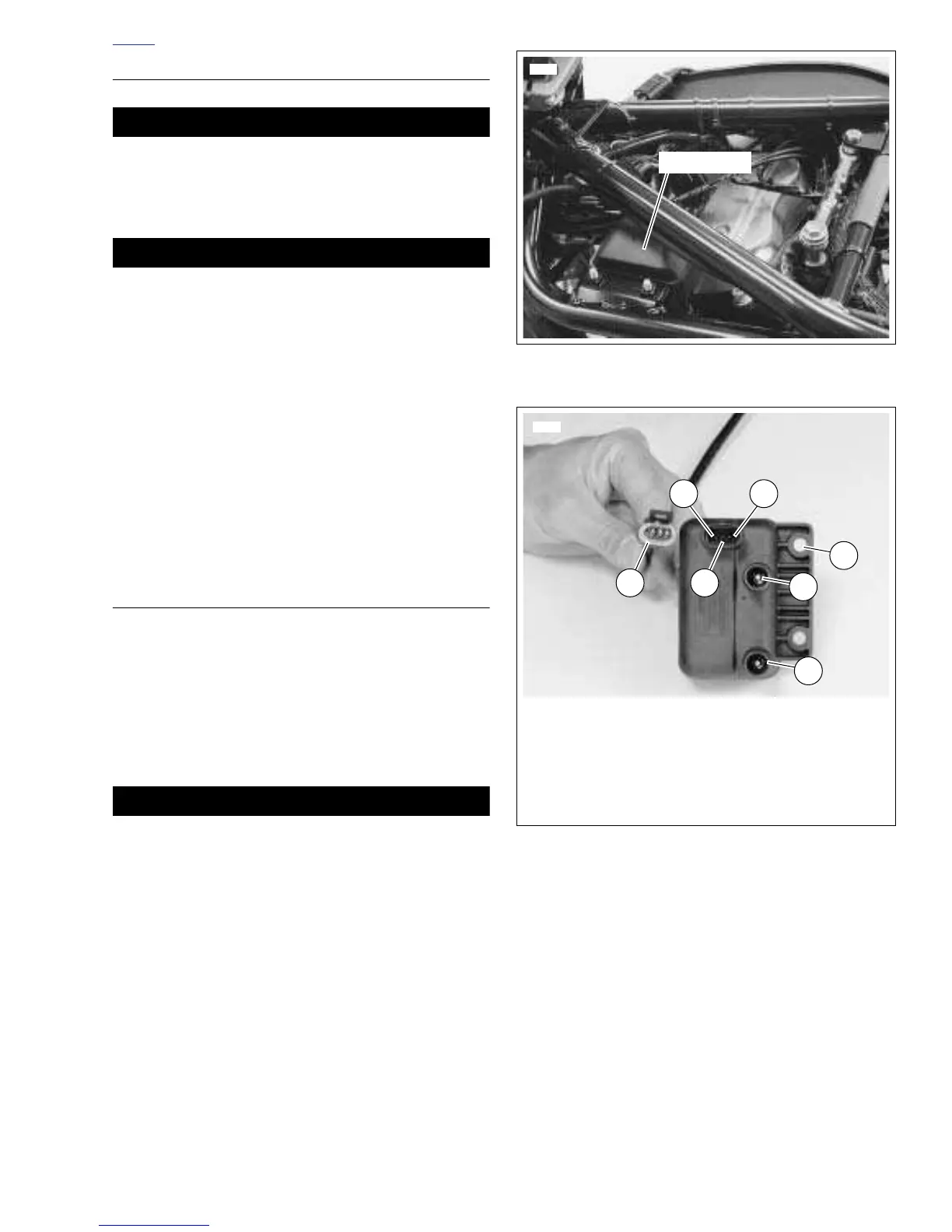 3. Connect front spark plug cable to connector (2) and rear