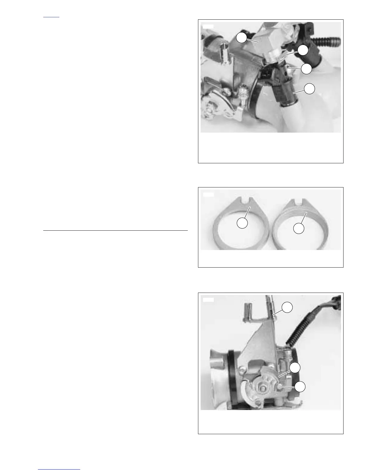 3. Snap the injector clips (2) over the flange on the fuel rail